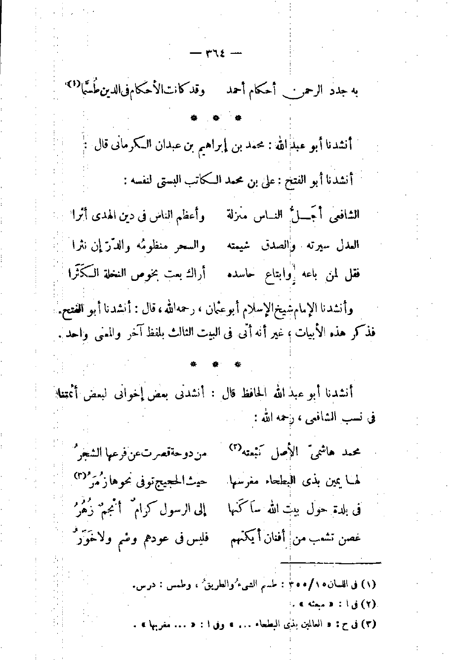 أنشدنا أبو عبد الله الحافظ قال: أنشدني بعض إخواني لبعض أئمتنا في نسب الشافعي، رحمه الله: