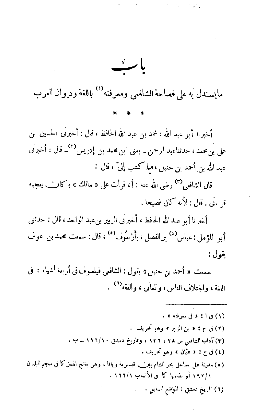 ما يستدل به على فصاحة الشافعي ومعرفته (١) باللغة وديوان العرب.