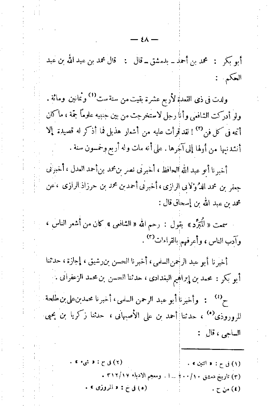 أبو بكر: محمد بن أحمد - بدمشق - قال: قال محمد بن عبد الله بن عبد الحكم: