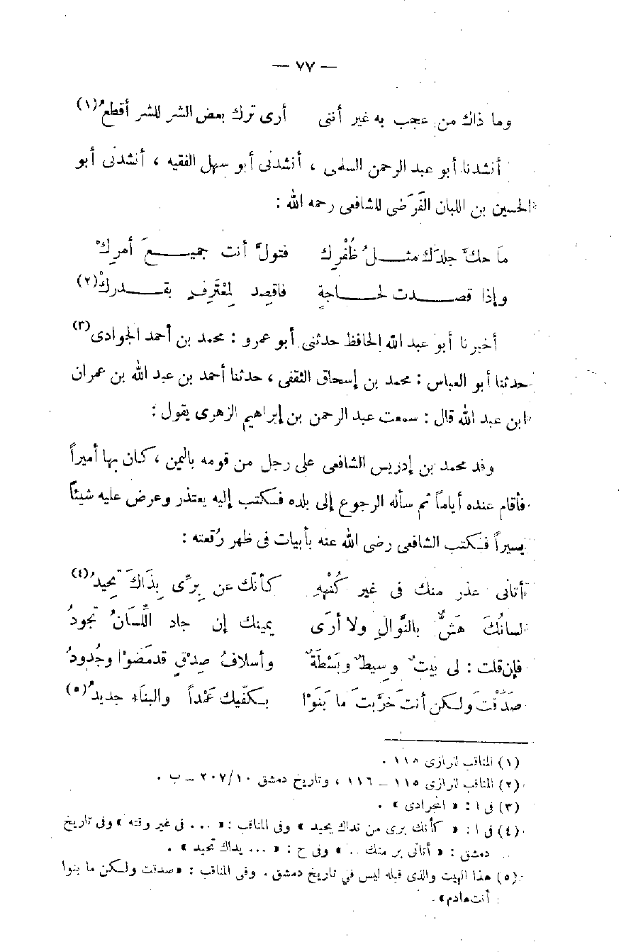 أنشدنا أبو عبد الرحمن السلمي، أنشدني أبو سهل الفقيه، أنشدني أبو الحسين بن اللبان الفَرَضي للشافعي رحمه الله: