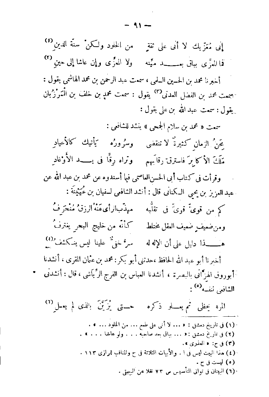 سمعت «محمد بن سلام الجمحي» ينشد للشافعي: