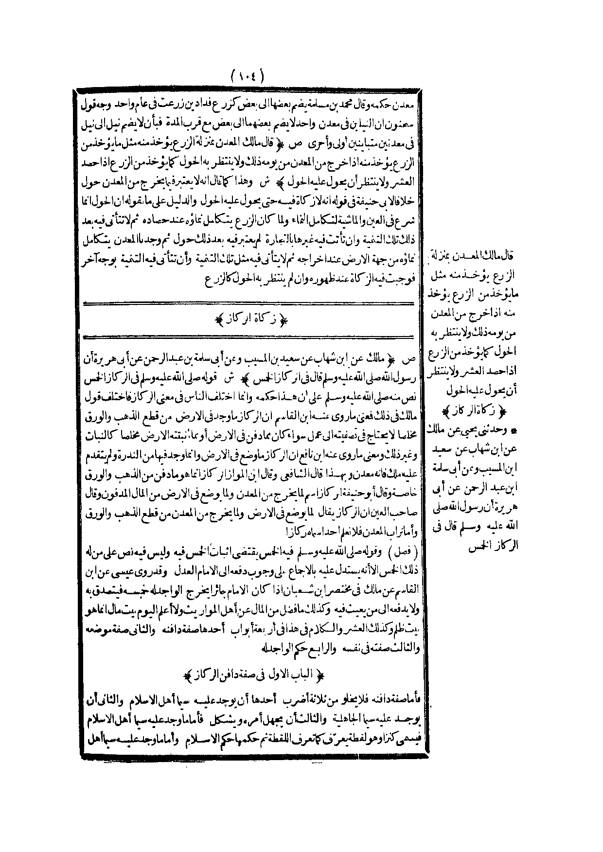 زَكَاةُ الرِّكَازِ (ص) : (مَالِكٌ عَنْ ابْنِ شِهَابٍ عَنْ سَعِيدِ بْنِ الْمُسَيِّبِ وَعَنْ أَبِي سَلَمَةَ بْنِ عَبْدِ الرَّحْمَنِ عَنْ أَبِي هُرَيْرَةَ أَنَّ رَسُولَ اللَّهِ - صَلَّى اللَّهُ عَلَيْهِ وَسَلَّمَ - قَالَ «فِي الرِّكَازِ الْخُمُسُ» )