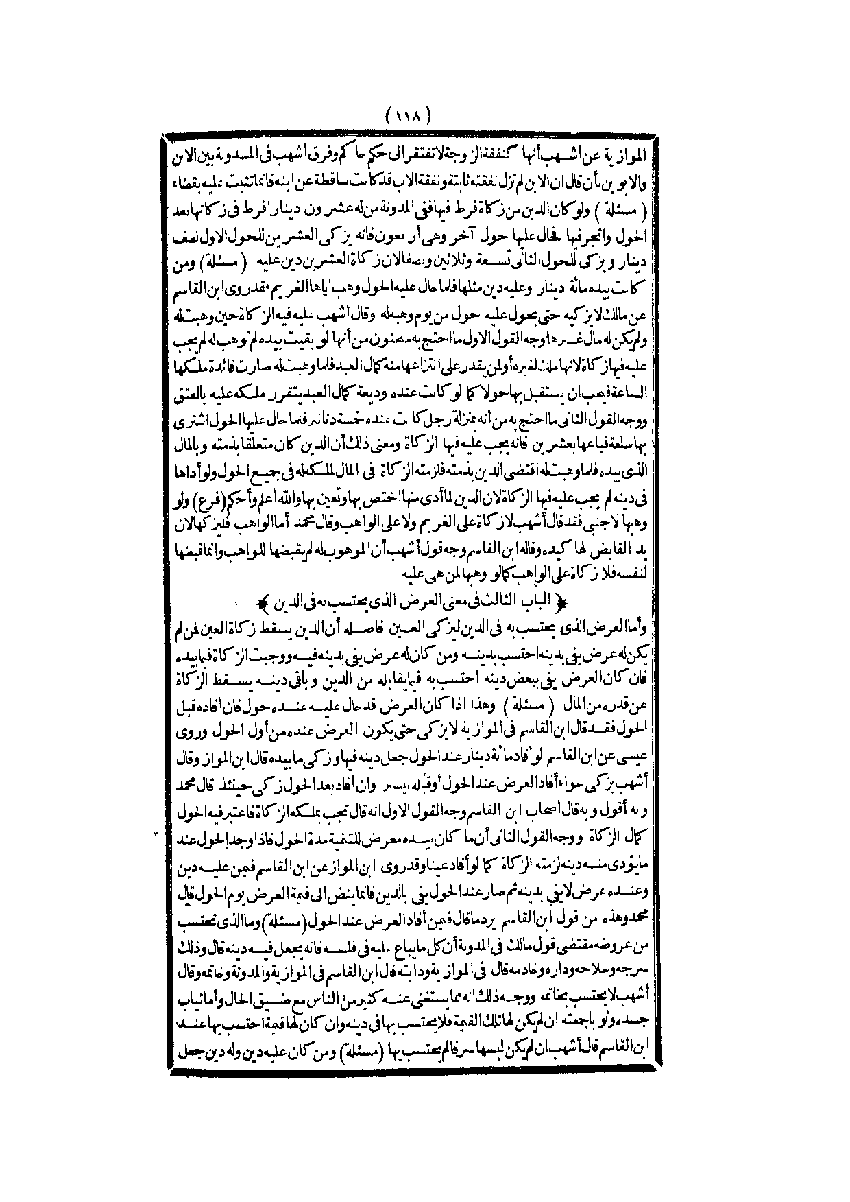 [الْبَابُ الثَّالِثُ فِي مَعْنَى الْعَرْضِ الَّذِي يُحْتَسَبُ بِهِ فِي الدَّيْنِ]
