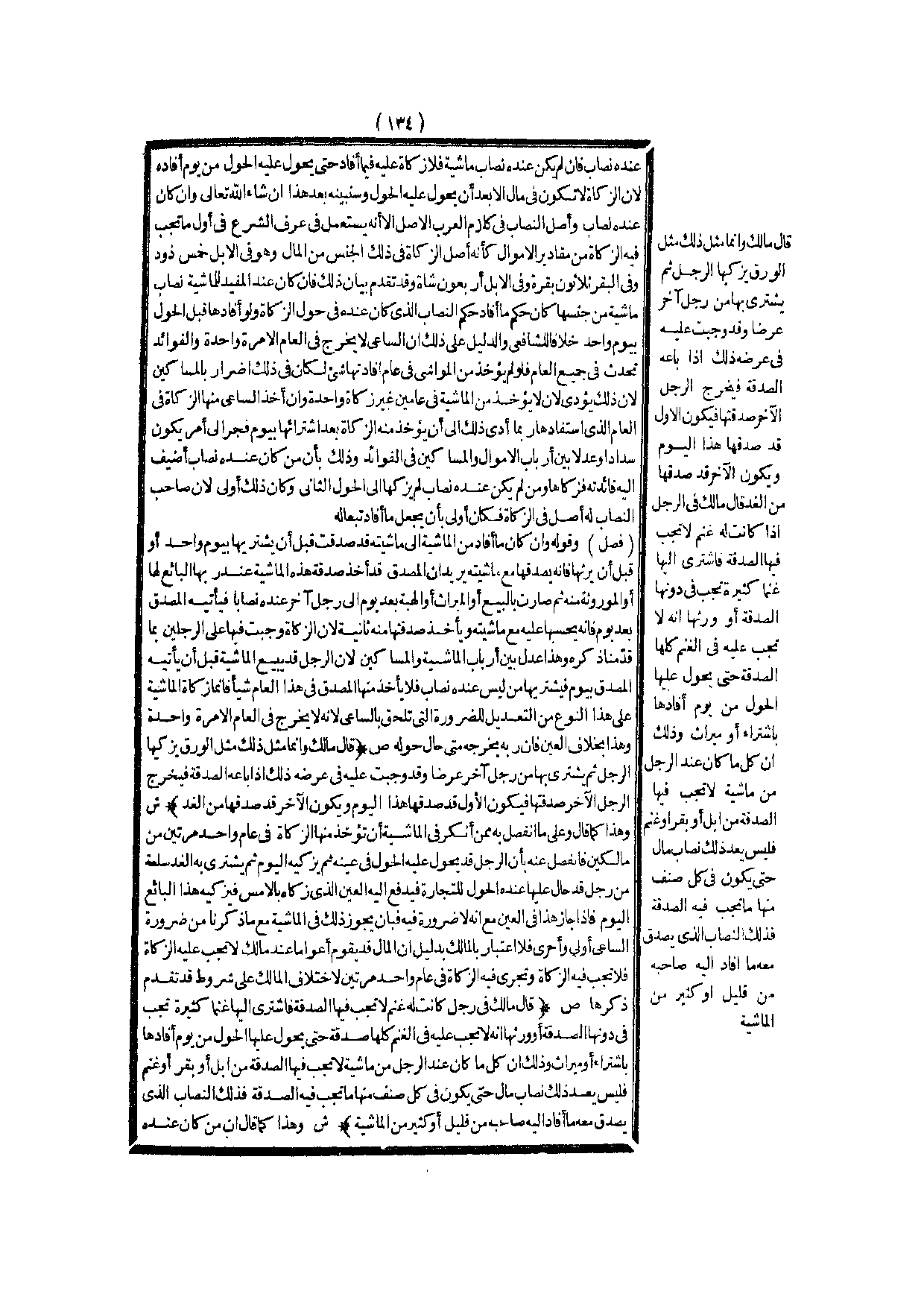 (ش) : وَهَذَا كَمَا قَالَ وَعَلَى مَا انْفَصَلَ بِهِ مِمَّنْ أَنْكَرَ فِي الْمَاشِيَةِ أَنْ تُؤْخَذَ مِنْهَا الزَّكَاةُ فِي عَامٍ وَاحِدٍ مَرَّتَيْنِ مِنْ مَالِكَيْنِ فَانْفَصَلَ عَنْهُ بِأَنَّ الرَّجُلَ قَدْ يَحُولُ عَلَيْهِ الْحَوْلُ فِي عَيْنِهِ، ثُمَّ يُزَكِّيه الْيَوْمَ، ثُمَّ يَشْتَرِي بِهِ الْغَدَ سِلْعَةً مِنْ رَجُلٍ قَدْ حَالَ عَلَيْهَا عِنْدَهُ الْحَوْلُ لِلتِّجَارَةِ فَيَدْفَعُ إلَيْهِ الْعَيْنَ الَّذِي زَكَّاهُ بِالْأَمْسِ فَيُزَكِّيه هَذَا الْبَائِعُ الْيَوْمَ فَإِذَا جَازَ هَذَا فِي الْعَيْنِ مَعَ أَنَّهُ لَا ضَرُورَةَ فِيهِ فَبِأَنْ يَجُوزَ ذَلِكَ فِي الْمَاشِيَةِ مَعَ مَا ذَكَرْنَا مِنْ ضَرُورَةِ السَّاعِي أَوْلَى وَأَحْرَى فَلَا اعْتِبَارَ بِالْمَالِكِ بِدَلِيلِ أَنَّ الْمَالَ قَدْ يُقَوَّمُ أَعْوَامًا عِنْدَ مَالِكٍ لَا تَجِبُ عَلَيْهِ الزَّكَاةُ فَلَا تَجِبُ فِيهِ الزَّكَاةُ وَتَجْرِي فِيهِ الزَّكَاةُ فِي عَامٍ وَاحِدٍ مَرَّتَيْنِ لِاخْتِلَافِ الْمَالِكِ عَلَى شُرُوطٍ قَدْ تَقَدَّمَ ذِكْرُهَا.