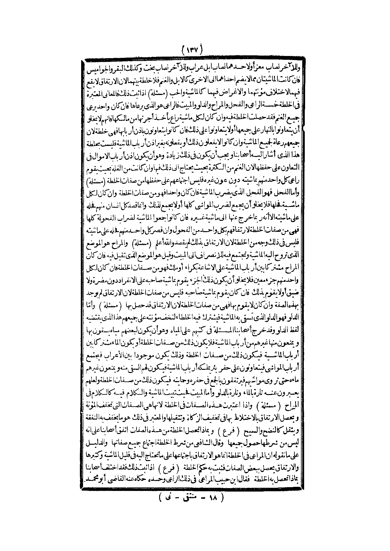 (فَرْعٌ) إذَا ثَبَتَ ذَلِكَ فَقَدْ اخْتَلَفَ أَصْحَابُنَا بِمَاذَا تَحْصُلُ بِهِ الْخُلْطَةُ فَقَالَ ابْنُ حَبِيبٍ الْمُرَاعَى فِي ذَلِكَ الرَّاعِي وَحْدَهُ حَكَاهُ عَنْهُ الْقَاضِي أَبُو مُحَمَّدٍ