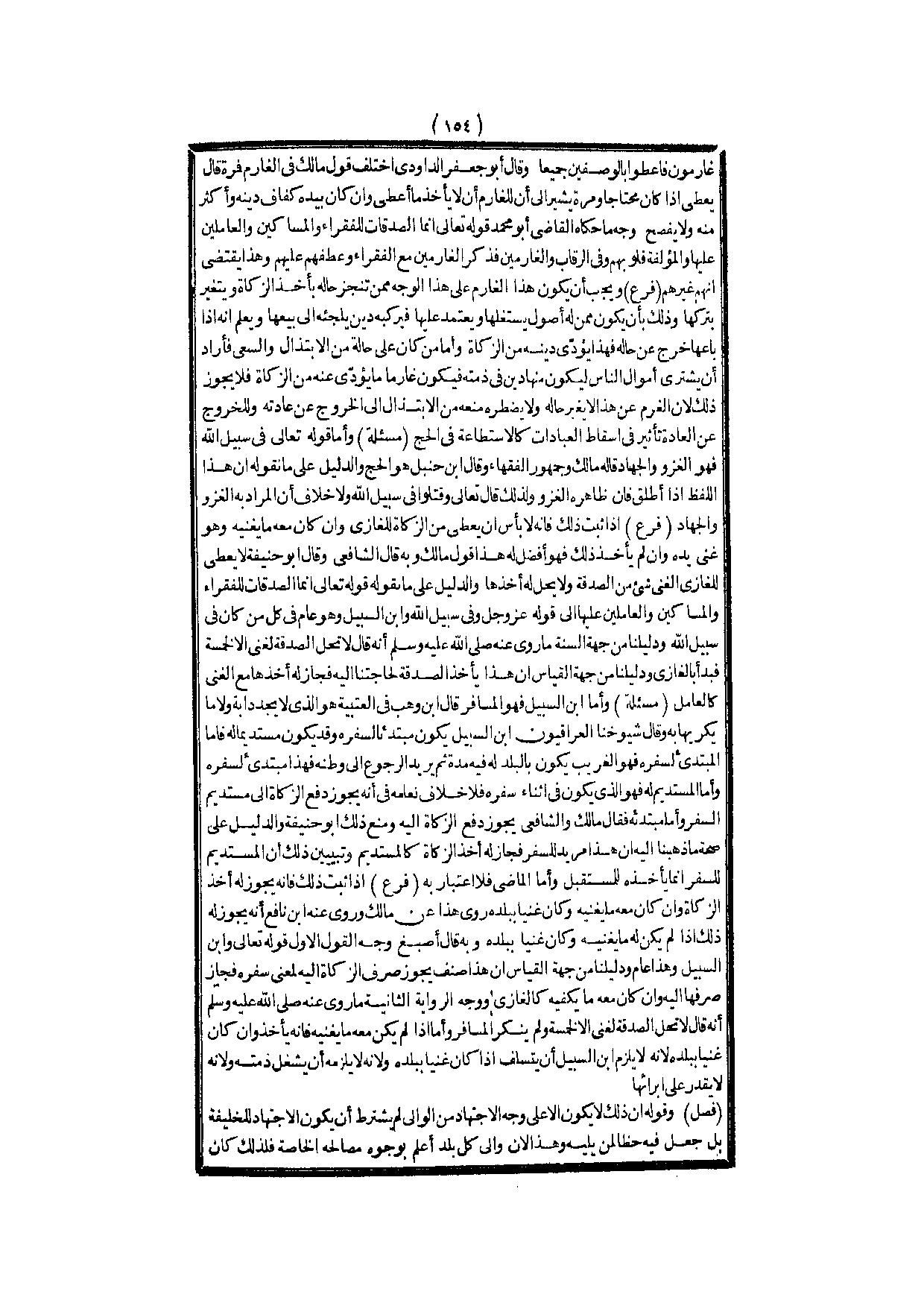 وَجْهُ الْقَوْلِ الْأَوَّلِ قَوْله تَعَالَى {وَابْنِ السَّبِيلِ} [الأنفال: 41] وَهَذَا عَامٌّ وَدَلِيلُنَا مِنْ جِهَةِ الْقِيَاسِ أَنَّ هَذَا صِنْفٌ يَجُوزُ صَرْفُ الزَّكَاةِ إلَيْهِ لِمَعْنَى سَفَرِهِ فَجَازَ صَرْفُهَا إلَيْهِ، وَإِنْ كَانَ مَعَهُ مَا يَكْفِيه كَالْغَازِي.