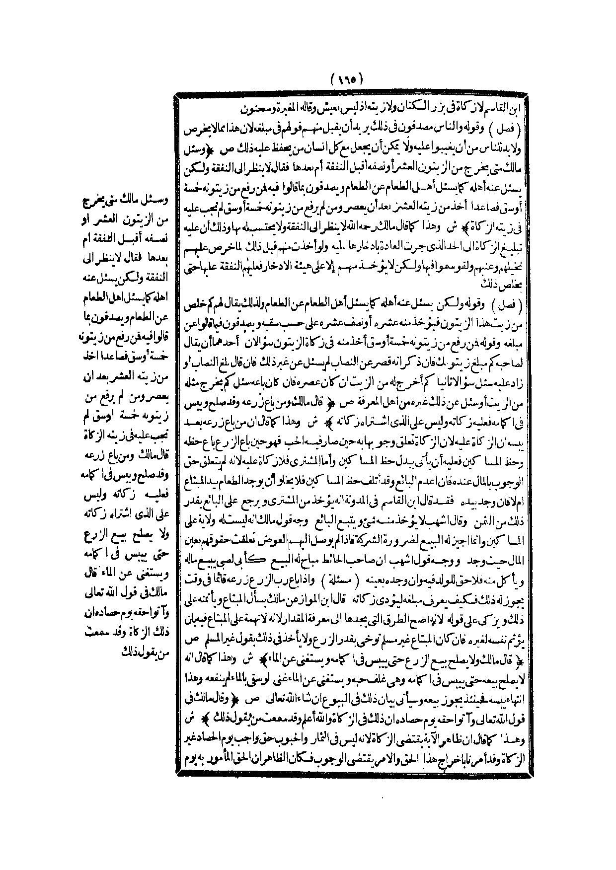 (ش) : وَهَذَا كَمَا قَالَ مَالِكٌ - رَحِمَهُ اللَّهُ - لَا يُنْظَرُ إلَى النَّفَقَةِ وَلَا يُحْتَسَبُ لَهُ بِهَا وَذَلِكَ أَنَّ عَلَيْهِ تَبْلِيغَ الزَّكَاةِ إلَى الْحَدِّ الَّذِي جَرَتْ الْعَادَةُ بِادِّخَارِهَا عَلَيْهِ وَلَوْ أُخِذَتْ مِنْهُمْ قَبْلَ ذَلِكَ لَمَا خُرِصَ عَلَيْهِمْ نَخِيلُهُمْ وَعِنَبُهُمْ وَلَقُوسِمُوا فِيهَا وَلَكِنْ لَا يُؤْخَذُ مِنْهُمْ إلَّا عَلَى هَيْئَةِ الِادِّخَارِ فَعَلَيْهِمْ النَّفَقَةُ عَلَيْهَا حَتَّى يَخْلُصَ ذَلِكَ.