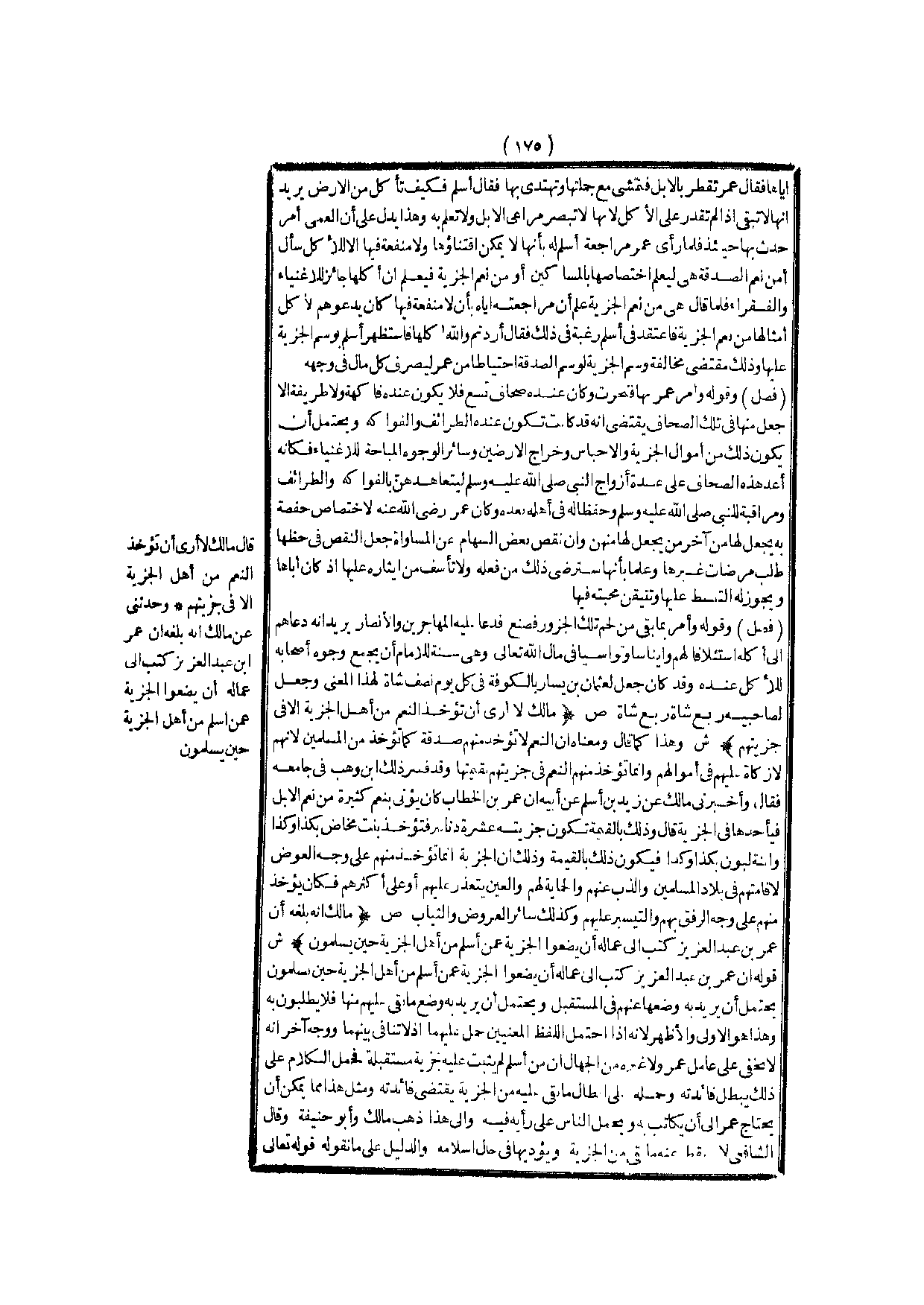 (ش) : قَوْلُهُ أَنَّ عُمَرَ بْنَ عَبْدِ الْعَزِيزِ كَتَبَ إلَى عُمَّالِهِ أَنْ يَضَعُوا الْجِزْيَةَ عَمَّنْ أَسْلَمَ مِنْ أَهْلِ الْجِزْيَةِ حِينَ يُسْلِمُونَ يَحْتَمِلُ أَنْ يُرِيدَ بِهِ وَضْعَهَا عَنْهُمْ فِي الْمُسْتَقْبَلِ وَيَحْتَمِلُ أَنْ يُرِيدَ بِهِ وَضْعَ مَا بَقِيَ عَلَيْهِمْ مِنْهَا فَلَا يُطْلَبُونَ بِهِ وَهَذَا هُوَ الْأَوْلَى وَالْأَظْهَرُ؛ لِأَنَّهُ إذَا احْتَمَلَ اللَّفْظُ الْمَعْنَيَيْنِ حُمِلَ عَلَيْهِمَا إذْ لَا تَنَافِي بَيْنَهُمَا وَوَجْهٌ آخَرُ أَنَّهُ لَا يَخْفَى عَلَى عَامِلِ عُمَرَ وَلَا غَيْرِهِ مِنْ الْجُهَّالِ أَنَّ مَنْ أَسْلَمَ لَمْ يَثْبُتْ عَلَيْهِ جِزْيَةٌ مُسْتَقْبَلَةٌ فَحَمْلُ الْكَلَامِ عَلَى ذَلِكَ يُبْطِلُ فَائِدَتَهُ وَحَمْلُهُ عَلَى إبْطَالِ مَا بَقِيَ عَلَيْهِ مِنْ الْجِزْيَةِ يَقْتَضِي فَائِدَتَهُ وَمِثْلُ هَذَا مِمَّا يُمْكِنُ أَنْ يَحْتَاجَ عُمَرُ إلَى أَنْ يُكَاتِبَ بِهِ وَيَحْمِلَ النَّاسَ عَلَى رَأْيِهِ فِيهِ، وَإِلَى هَذَا ذَهَبَ مَالِكٌ وَأَبُو حَنِيفَةَ.