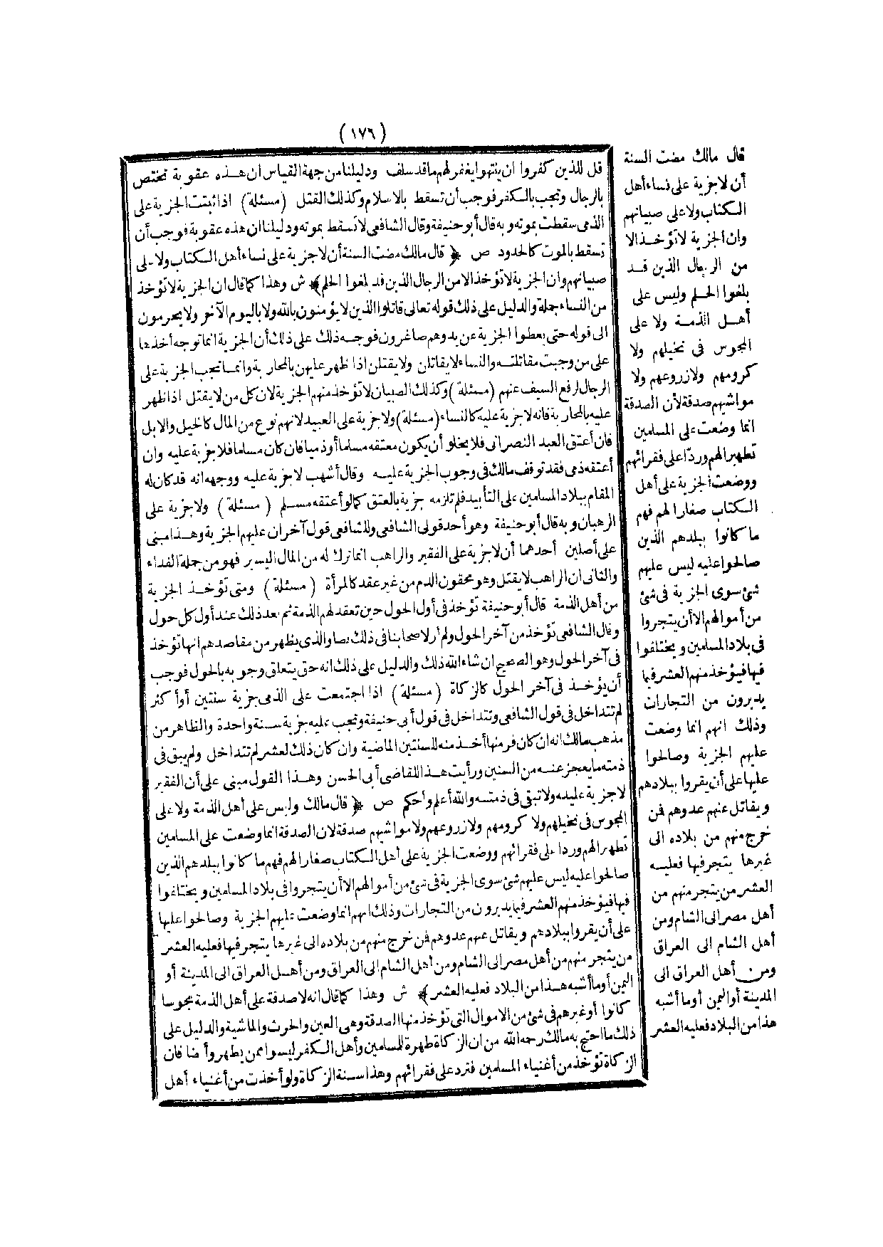 (ش) : وَهَذَا كَمَا قَالَ إنَّهُ لَا صَدَقَةَ عَلَى أَهْلِ الذِّمَّةِ مَجُوسًا كَانُوا أَوْ غَيْرَهُمْ فِي شَيْءٍ مِنْ الْأَمْوَالِ الَّتِي تُؤْخَذُ مِنْهَا الصَّدَقَةُ وَهِيَ الْعَيْنُ وَالْحَرْثُ وَالْمَاشِيَةُ وَالدَّلِيلُ عَلَى ذَلِكَ مَا احْتَجَّ بِهِ مَالِكٌ - رَحِمَهُ اللَّهُ - مِنْ أَنَّ الزَّكَاةَ طُهْرَةٌ لِلْمُسْلِمِينَ وَأَهْلُ الْكُفْرِ لَيْسُوا مِمَّنْ يُطَّهَرُ وَأَيْضًا فَإِنَّ الزَّكَاةَ تُؤْخَذُ مِنْ أَغْنِيَاءِ الْمُسْلِمِينَ فَتُرَدُّ عَلَى فُقَرَائِهِمْ، وَهَذَا سُنَّةُ الزَّكَاةِ وَلَوْ أُخِذَتْ مِنْ أَغْنِيَاءِ أَهْلِ الذِّمَّةِ