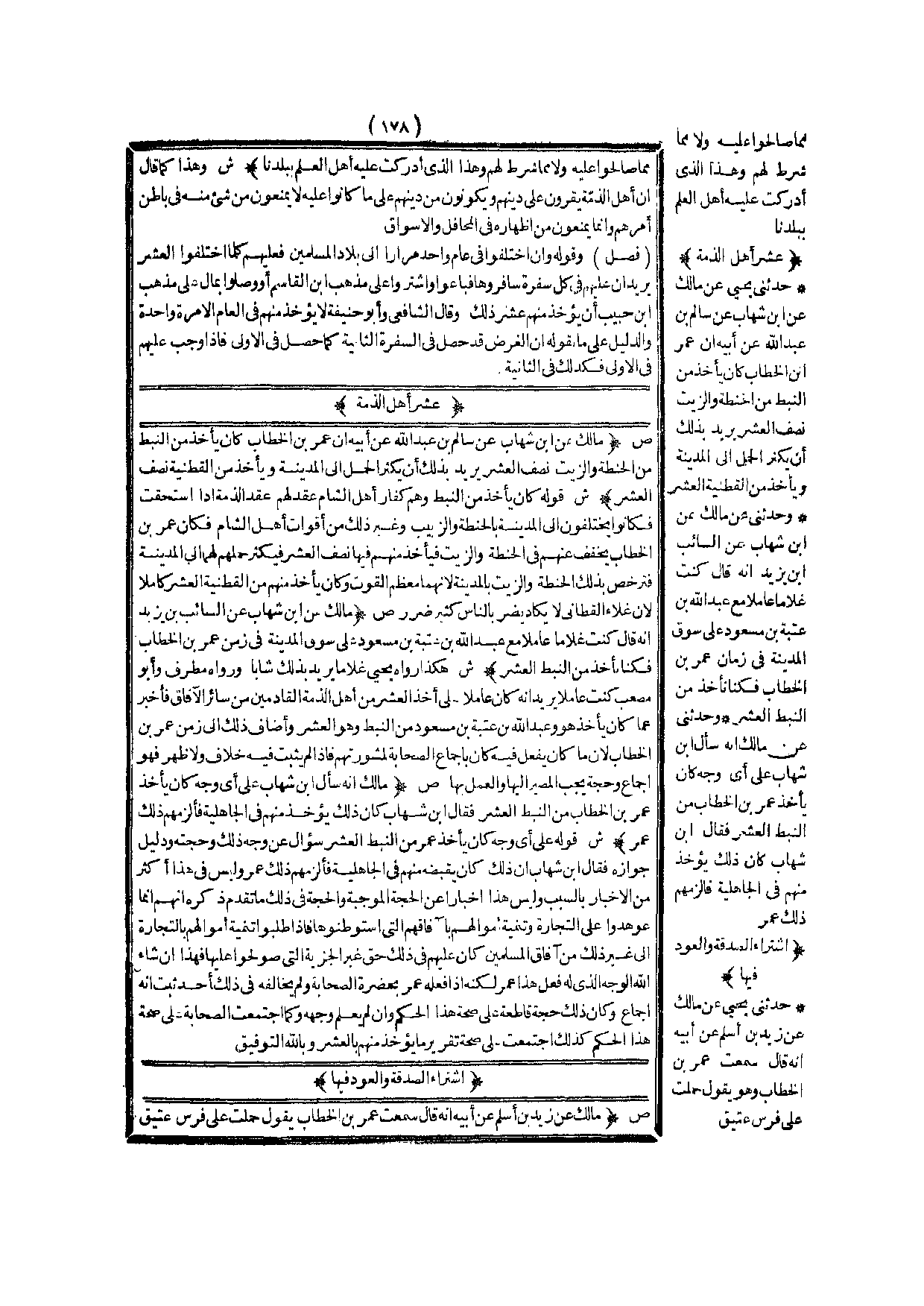 ص (مَالِكٌ أَنَّهُ سَأَلَ ابْنَ شِهَابٍ عَلَى أَيِّ وَجْهٍ كَانَ يَأْخُذُ عُمَرُ بْنُ الْخَطَّابِ مِنْ النَّبَطِ الْعُشْرَ فَقَالَ ابْنُ شِهَابٍ: كَانَ ذَلِكَ يُؤْخَذُ مِنْهُمْ فِي الْجَاهِلِيَّةِ فَأَلْزَمَهُمْ ذَلِكَ عُمَرُ) .