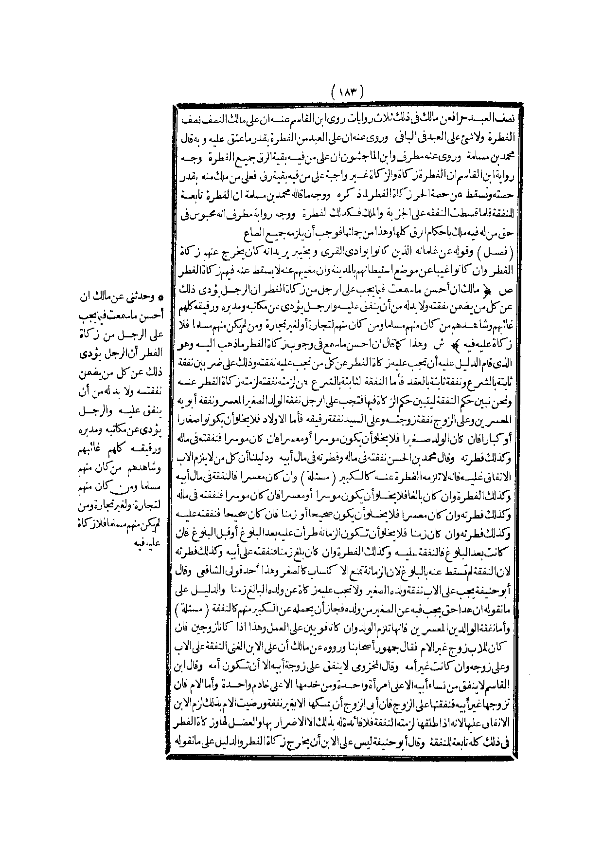 (ش) : وَهَذَا كَمَا قَالَ إنَّ أَحْسَنَ مَا سَمِعَ فِي وُجُوبِ زَكَاةِ الْفِطْرِ مَا ذَهَبَ إلَيْهِ وَهُوَ الَّذِي قَامَ الدَّلِيلُ عَلَيْهِ أَنْ تَجِبَ عَلَيْهِ زَكَاةُ الْفِطْرِ عَنْ كُلِّ مَنْ تَجِبُ عَلَيْهِ نَفَقَتُهُ وَذَلِكَ عَلَى ضَرْبَيْنِ نَفَقَةٌ ثَابِتَةٌ بِالشَّرْعِ وَنَفَقَةٌ ثَابِتَةٌ بِالْعَقْدِ.
