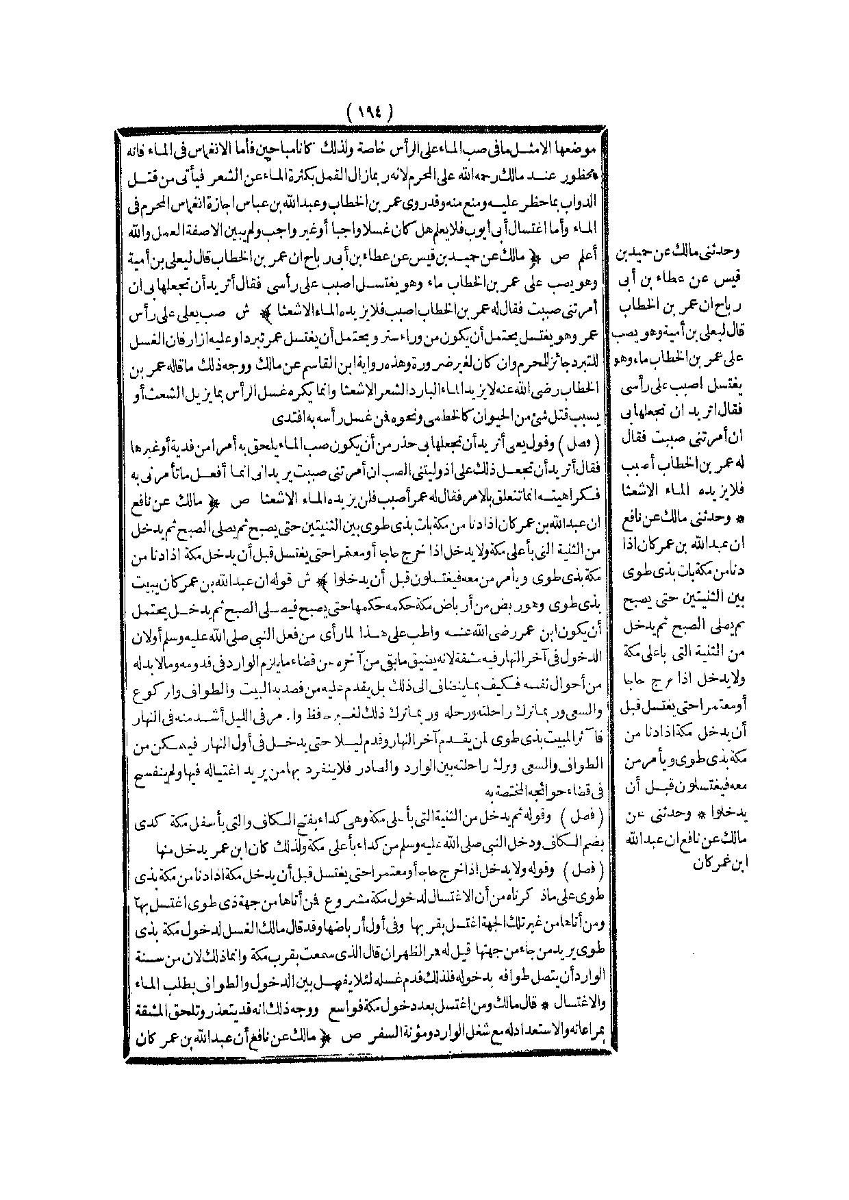 (ص) : (مَالِكٌ عَنْ نَافِعٍ أَنَّ عَبْدَ اللَّهِ بْنَ عُمَرَ كَانَ إذَا دَنَا مِنْ مَكَّةَ بَاتَ بِذِي طُوًى بَيْنَ الثَّنِيَّتَيْنِ حَتَّى يُصْبِحَ، ثُمَّ يُصَلِّيَ الصُّبْحَ، ثُمَّ يَدْخُلَ مِنْ الثَّنِيَّةِ الَّتِي بِأَعْلَى مَكَّةَ وَلَا يَدْخُلُ إذَا خَرَجَ حَاجًّا أَوْ مُعْتَمِرًا حَتَّى يَغْتَسِلَ قَبْلَ أَنْ يَدْخُلَ مَكَّةَ إذَا دَنَا مِنْ مَكَّةَ بِذِي طُوًى وَيَأْمُرُ مَنْ مَعَهُ فَيَغْتَسِلُونَ قَبْلَ أَنْ يَدْخُلُوا)