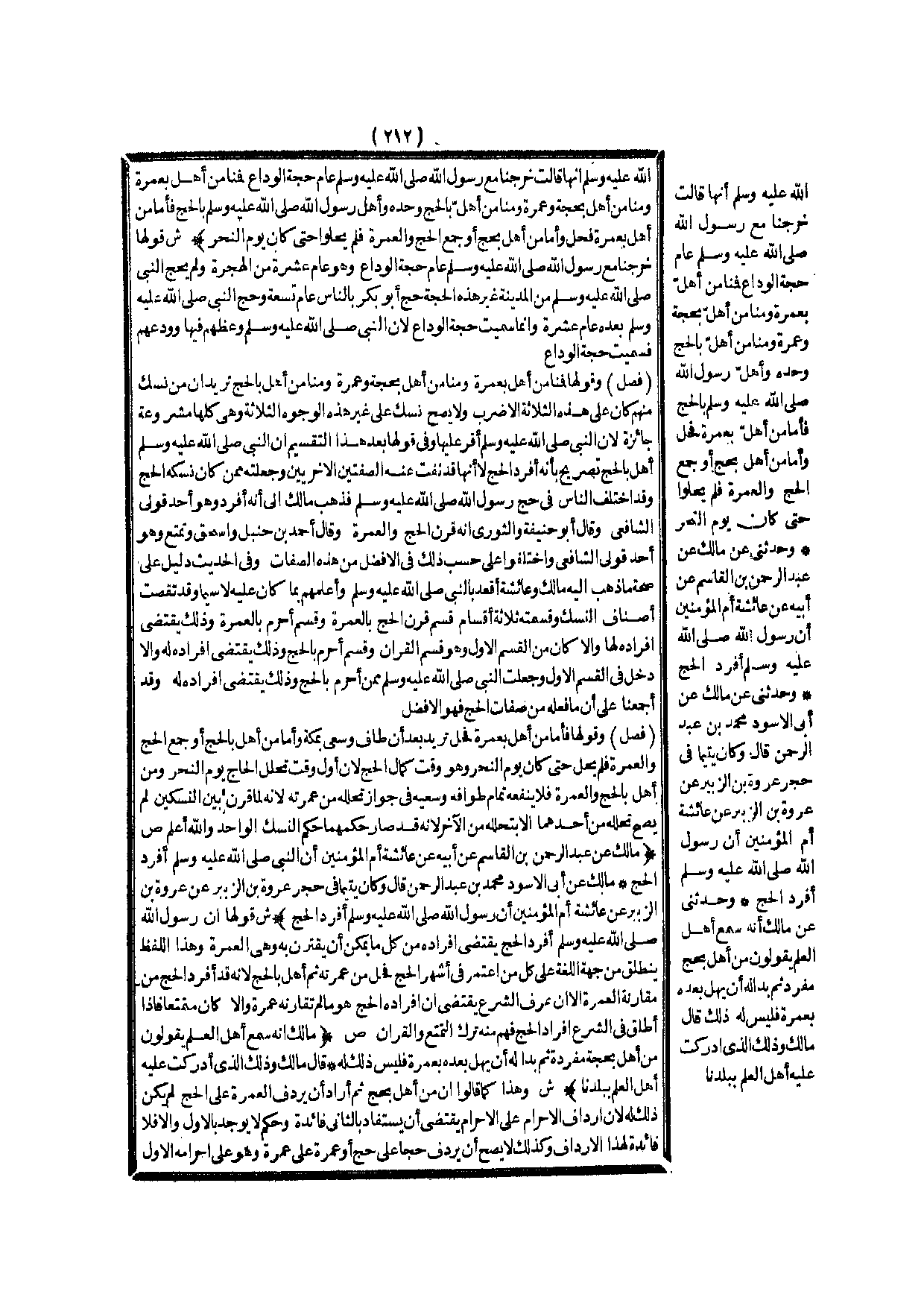 ص (مَالِكٌ عَنْ عَبْدِ الرَّحْمَنِ بْنِ الْقَاسِمِ عَنْ أَبِيهِ عَنْ عَائِشَةَ أُمِّ الْمُؤْمِنِينَ أَنَّ «النَّبِيَّ - صَلَّى اللَّهُ عَلَيْهِ وَسَلَّمَ - أَفْرَدَ الْحَجَّ» مَالِكٌ عَنْ أَبِي الْأَسْوَدِ مُحَمَّدِ بْنِ عَبْدِ الرَّحْمَنِ قَالَ وَكَانَ يَتِيمًا فِي حِجْرِ عُرْوَةَ بْنِ الزُّبَيْرِ عَنْ عُرْوَةَ بْنِ الزُّبَيْرِ عَنْ عَائِشَةَ أُمِّ الْمُؤْمِنِينَ أَنَّ «رَسُولَ اللَّهِ - صَلَّى اللَّهُ عَلَيْهِ وَسَلَّمَ - أَفْرَدَ الْحَجَّ» ) .