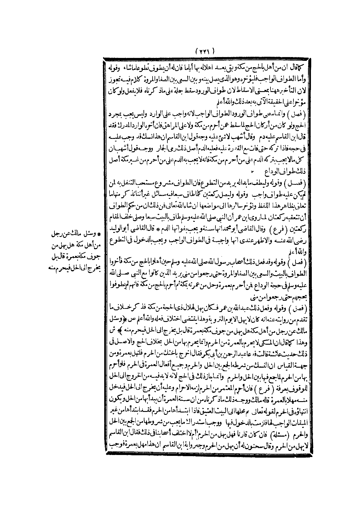 (ص) : (وَسُئِلَ مَالِكٌ عَنْ رَجُلٍ مِنْ أَهْلِ مَكَّةَ هَلْ يُهِلُّ مِنْ جَوْفِ مَكَّةَ بِعُمْرَةٍ قَالَ بَلْ يَخْرُجُ إلَى الْحِلِّ فَيُحْرِمُ مِنْهُ) .