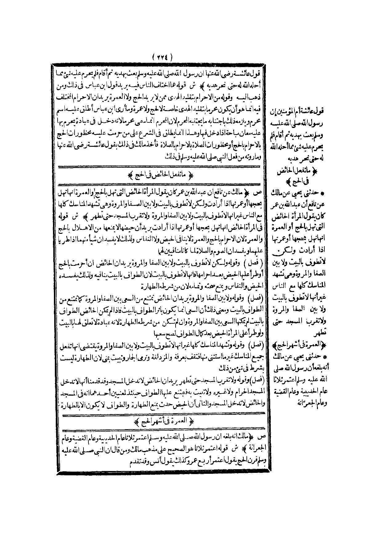 الْعُمْرَةُ فِي أَشْهُرِ الْحَجِّ (ص) : (مَالِكٌ أَنَّهُ بَلَغَهُ أَنَّ «رَسُولَ اللَّهِ - صَلَّى اللَّهُ عَلَيْهِ وَسَلَّمَ - اعْتَمَرَ ثَلَاثًا: عَامَ الْحُدَيْبِيَةِ وَعَامَ الْقَضِيَّةِ وَعَامَ الْجِعْرَانَةِ» )