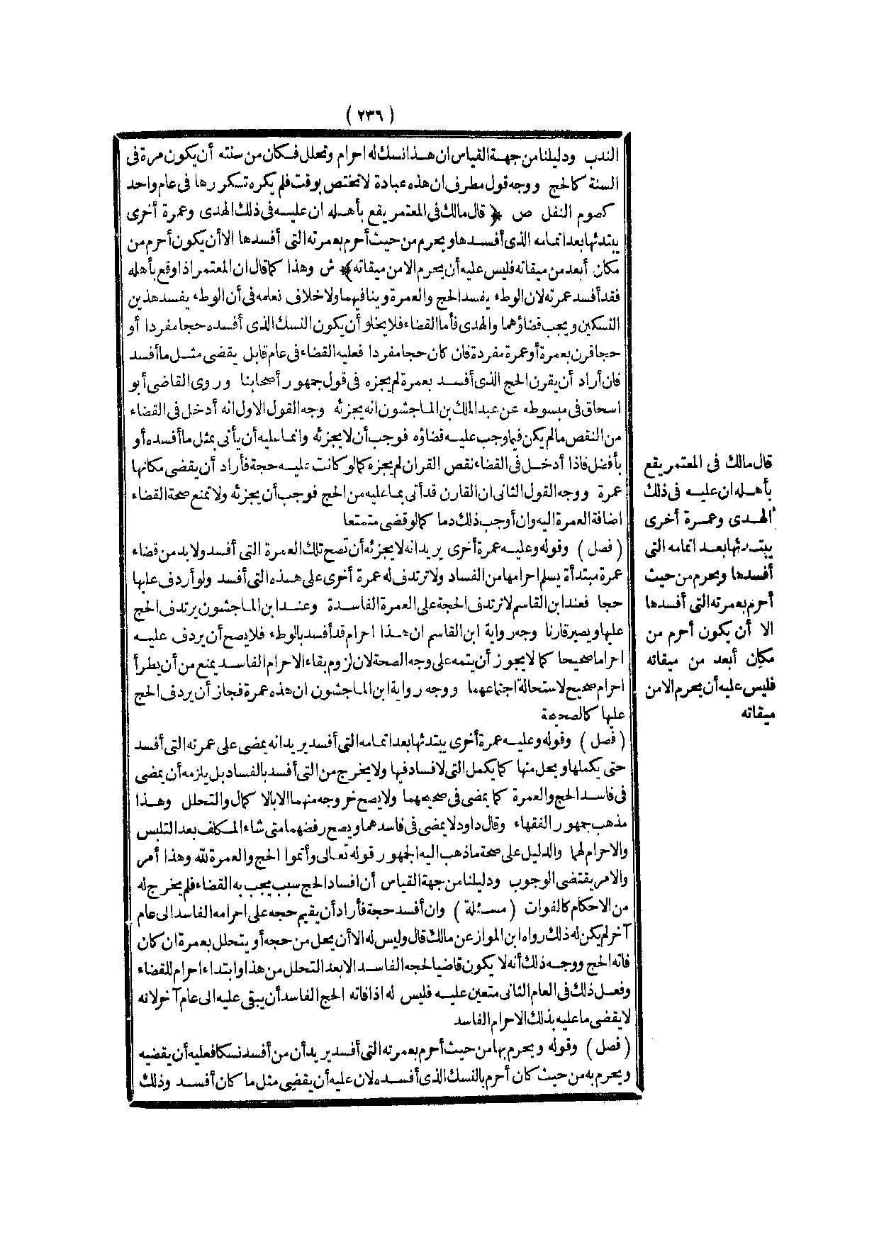 (ش) : وَهَذَا كَمَا قَالَ: إنَّ الْمُعْتَمِرَ إذَا وَقَعَ بِأَهْلِهِ فَقَدْ أَفْسَدَ عُمْرَتَهُ؛ لِأَنَّ الْوَطْءَ يُفْسِدُ الْحَجَّ وَالْعُمْرَةَ وَيُنَافِيهِمَا وَلَا خِلَافَ نَعْلَمُهُ فِي أَنَّ الْوَطْءَ يُفْسِدُ هَذَيْنِ النُّسُكَيْنِ وَيَجِبُ قَضَاؤُهُمَا وَالْهَدْيُ فَأَمَّا الْقَضَاءُ فَلَا يَخْلُو أَنْ يَكُونَ النُّسُكُ الَّذِي أَفْسَدَهُ حَجًّا مُفْرَدًا أَوْ حَجًّا قُرِنَ بِعُمْرَةٍ أَوْ عُمْرَةً مُفْرَدَةً فَإِنْ كَانَ حَجًّا مُفْرَدًا فَعَلَيْهِ الْقَضَاءُ فِي عَامٍ قَابِلٍ يَقْضِي مِثْلَ مَا أَفْسَدَ فَإِنْ أَرَادَ أَنْ يَقْرِنَ الْحَجَّ الَّذِي أَفْسَدَ بِعُمْرَةٍ لَمْ يُجْزِهِ فِي قَوْلِ جُمْهُورِ أَصْحَابِنَا وَرَوَى الْقَاضِي أَبُو إِسْحَاقَ فِي مَبْسُوطِهِ عَنْ عَبْدِ الْمَلِكِ بْنِ الْمَاجِشُونِ أَنَّهُ يُجْزِئُهُ.
