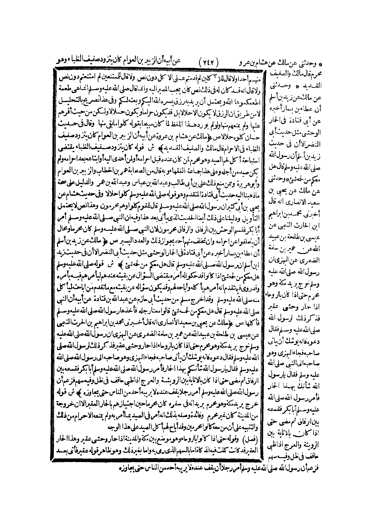 (ص) : (مَالِكٌ عَنْ هِشَامِ بْنِ عُرْوَةَ عَنْ أَبِيهِ أَنَّ الزُّبَيْرَ بْنَ الْعَوَامّ كَانَ يَتَزَوَّدُ صَفِيفَ الظِّبَاءِ فِي الْإِحْرَامِ قَالَ مَالِكٌ وَالصَّفِيفُ الْقَدِيدُ) .