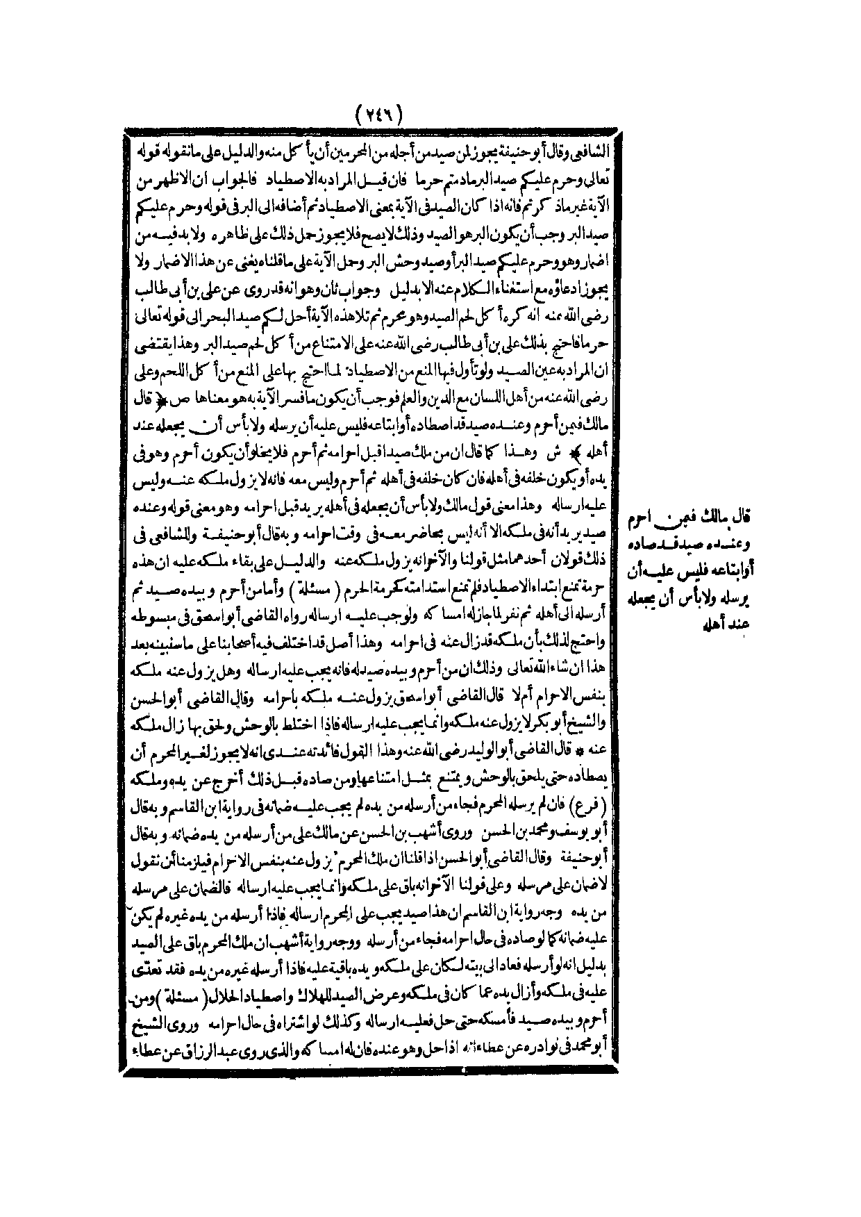 ـــــــــــــــــــــــــــــQالشَّافِعِيُّ وَقَالَ أَبُو حَنِيفَةَ يَجُوزُ لِمَنْ صِيدَ مِنْ أَجْلِهِ مِنْ الْمُحْرِمِينَ أَنْ يَأْكُلَ مِنْهُ، وَالدَّلِيلُ عَلَى مَا نَقُولُهُ قَوْله تَعَالَى {وَحُرِّمَ عَلَيْكُمْ صَيْدُ الْبَرِّ مَا دُمْتُمْ حُرُمًا} [المائدة: 96] فَإِنْ قِيلَ: الْمُرَادُ بِهِ الِاصْطِيَادُ فَالْجَوَابُ أَنَّ الْأَظْهَرَ مِنْ الْآيَةِ غَيْرُ مَا ذَكَرْتُمْ فَإِنَّهُ إذَا كَانَ الصَّيْدُ فِي الْآيَةِ بِمَعْنَى الِاصْطِيَادِ، ثُمَّ أَضَافَهُ إلَى الْبَرِّ فِي قَوْلِهِ {وَحُرِّمَ عَلَيْكُمْ صَيْدُ الْبَرِّ} [المائدة: 96] وَجَبَ أَنْ يَكُونَ الْبَرُّ هُوَ الصَّيْدُ وَذَلِكَ لَا يَصِحُّ فَلَا يَجُوزُ حَمْلُ ذَلِكَ عَلَى ظَاهِرِهِ، وَلَا بُدَّ فِيهِ مِنْ إضْمَارٍ وَهُوَ وَحُرِّمَ عَلَيْكُمْ صَيْدُ الْبَرِّ أَوْ صَيْدُ وَحْشِ الْبَرِّ، وَحَمْلُ الْآيَةِ عَلَى مَا قُلْنَاهُ يُغْنِي عَنْ هَذَا الْإِضْمَارِ وَلَا يَجُوزُ ادِّعَاؤُهُ مَعَ اسْتِغْنَاءِ الْكَلَامِ عَنْهُ إلَّا بِدَلِيلِ وُجُوبٍ ثَانٍ وَهُوَ أَنَّهُ قَدْ رُوِيَ عَنْ عَلِيِّ بْنِ أَبِي طَالِبٍ - رَضِيَ اللَّهُ عَنْهُ - أَنَّهُ كَرِهَ أَكْلَ لَحْمِ الصَّيْدِ وَهُوَ مُحْرِمٌ، ثُمَّ تَلَا هَذِهِ الْآيَةَ {أُحِلَّ لَكُمْ صَيْدُ الْبَحْرِ} [المائدة: 96] إلَى قَوْله تَعَالَى {حُرُمًا} [المائدة: 96] فَاحْتَجَّ بِذَلِكَ عَلِيُّ بْنُ أَبِي طَالِبٍ - رَضِيَ اللَّهُ عَنْهُ - عَلَى الِامْتِنَاعِ مِنْ أَكْلِ لَحْمِ صَيْدِ الْبَرِّ وَهَذَا يَقْتَضِي أَنَّ الْمُرَادَ بِهِ عَيْنُ الصَّيْدِ وَلَوْ تَأَوَّلَ فِيهَا الْمَنْعَ مِنْ الِاصْطِيَادِ لَمَا احْتَجَّ بِهَا عَلَى الْمَنْعِ مِنْ أَكْلِ اللَّحْمِ وَعَلِيٌّ - رَضِيَ اللَّهُ عَنْهُ - مِنْ أَهْلِ اللِّسَانِ مَعَ الدِّينِ وَالْعِلْمِ فَوَجَبَ أَنْ يَكُونَ مَا فَسَّرَ الْآيَةَ بِهِ هُوَ مَعْنَاهَا.