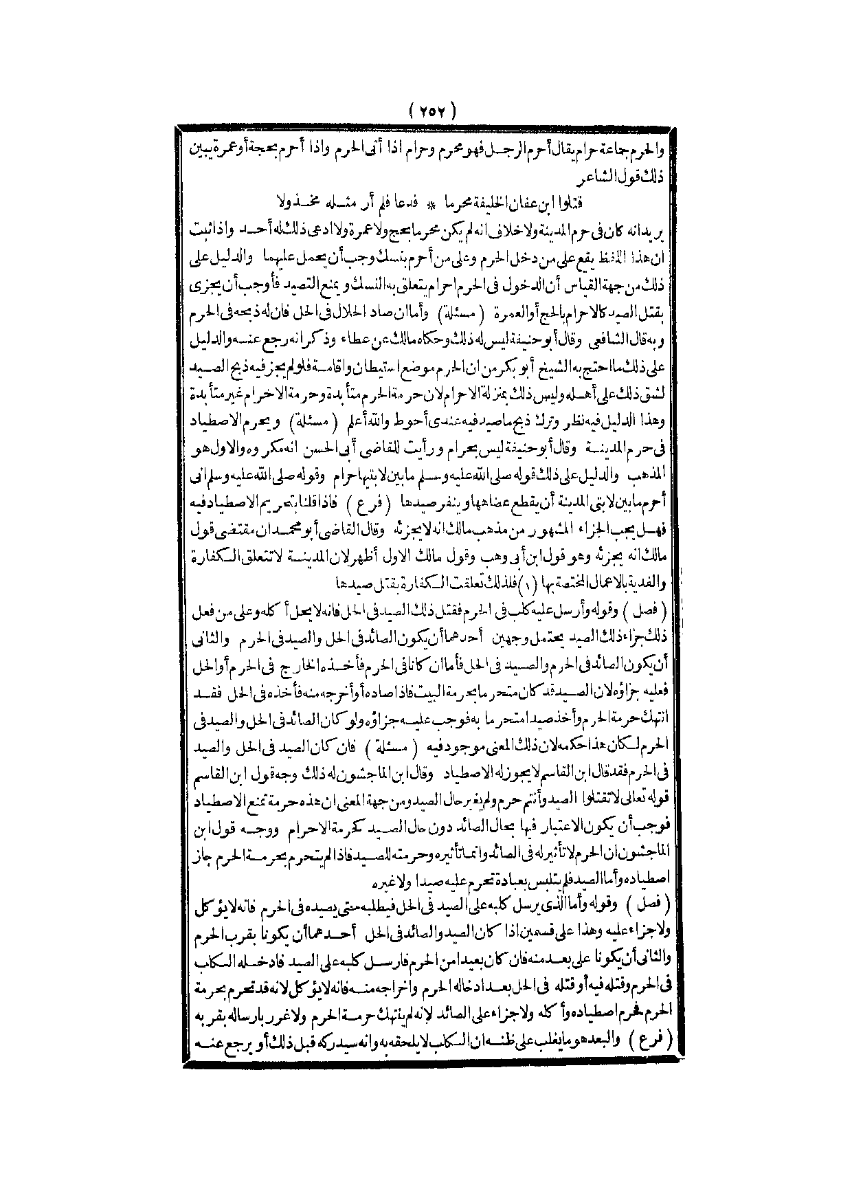(مَسْأَلَةٌ) وَأَمَّا إنْ صَادَ الْحَلَالُ فِي الْحِلِّ فَإِنَّ لَهُ ذَبْحَهُ فِي الْحَرَمِ وَبِهِ قَالَ الشَّافِعِيُّ وَقَالَ أَبُو حَنِيفَةَ لَيْسَ لَهُ ذَلِكَ وَحَكَاهُ مَالِكٌ عَنْ عَطَاءٍ وَذَكَرَ أَنَّهُ رَجَعَ عَنْهُ وَالدَّلِيلُ عَلَى ذَلِكَ مَا احْتَجَّ بِهِ الشَّيْخُ أَبُو بَكْرٍ مِنْ أَنَّ الْحَرَمَ مَوْضِعُ اسْتِيطَانٍ وَإِقَامَةٍ فَلَوْ لَمْ يَجُزْ فِيهِ ذَبْحُ الصَّيْدِ لَشَقَّ ذَلِكَ عَلَى أَهْلِهِ وَلَيْسَ ذَلِكَ بِمَنْزِلَةِ الْإِحْرَامِ؛ لِأَنَّ حُرْمَةَ الْحَرَمِ مُتَأَبِّدَةٌ وَحُرْمَةَ الْإِحْرَامِ غَيْرُ مُتَأَبِّدَةٍ وَهَذَا الدَّلِيلُ فِيهِ نَظَرٌ، وَتَرْكُ ذَبْحِ مَا صِيدَ فِيهِ عِنْدِي أَحْوَطُ وَاَللَّهُ أَعْلَمُ.