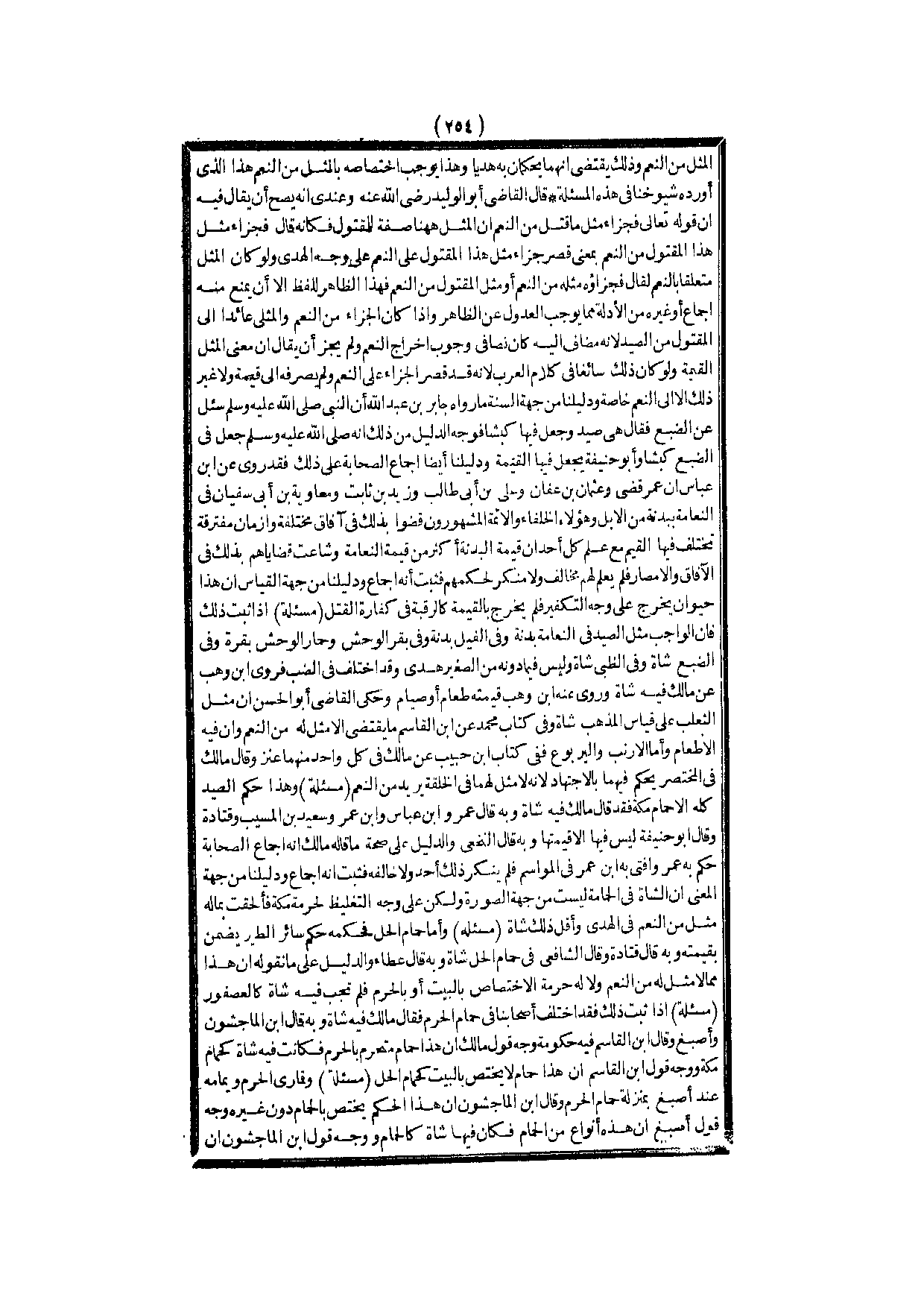 ـــــــــــــــــــــــــــــQالْمِثْلُ مِنْ النَّعَمِ وَذَلِكَ يَقْتَضِي أَنَّهُمَا يَحْكُمَانِ بِهِ هَدْيًا وَهَذَا يُوجِبُ اخْتِصَاصَهُ بِالْمِثْلِ مِنْ النَّعَمِ هَذَا الَّذِي أَوْرَدَهُ شُيُوخُنَا فِي هَذِهِ الْمَسْأَلَةِ.