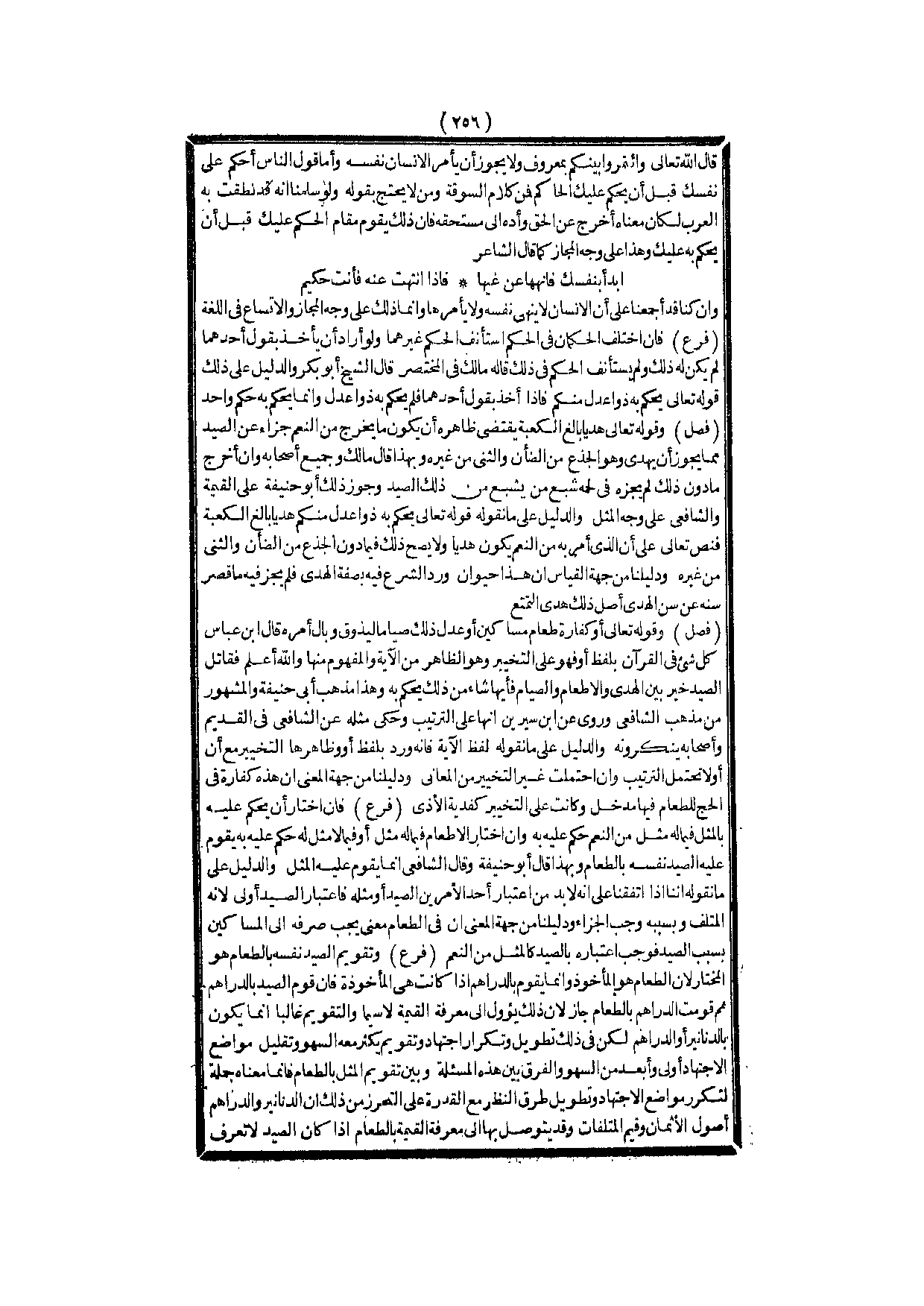 (فَرْعٌ) فَإِنْ اخْتَارَ أَنْ يُحْكَمَ عَلَيْهِ بِالْمِثْلِ فِيمَا لَهُ مِثْلٌ مِنْ النَّعَمِ حُكِمَ عَلَيْهِ بِهِ وَإِنْ اخْتَارَ الْإِطْعَامَ فِيمَا لَهُ مِثْلٌ أَوْ فِيمَا لَا مِثْلَ لَهُ حُكِمَ عَلَيْهِ بِهِ يُقَوَّمُ عَلَيْهِ الصَّيْدُ نَفْسُهُ بِالطَّعَامِ وَبِهَذَا قَالَ أَبُو حَنِيفَةَ وَقَالَ الشَّافِعِيُّ إنَّمَا يُقَوَّمُ عَلَيْهِ الْمِثْلُ، وَالدَّلِيلُ عَلَى مَا نَقُولُهُ أَنَّنَا إذَا اتَّفَقْنَا عَلَى أَنَّهُ لَا بُدَّ مِنْ اعْتِبَارِ أَحَدِ الْأَمْرَيْنِ الصَّيْدِ وَمِثْلِهِ فَاعْتِبَارُ الصَّيْدِ أَوْلَى؛ لِأَنَّهُ الْمُتْلَفُ وَبِسَبَبِهِ وَجَبَ الْجَزَاءُ وَدَلِيلُنَا مِنْ جِهَةِ الْمَعْنَى أَنَّ فِي الطَّعَامِ مَعْنًى يَجِبُ صَرْفُهُ إلَى الْمَسَاكِينِ بِسَبَبِ الصَّيْدِ فَوَجَبَ اعْتِبَارُهُ بِالصَّيْدِ كَالْمِثْلِ مِنْ النَّعَمِ.