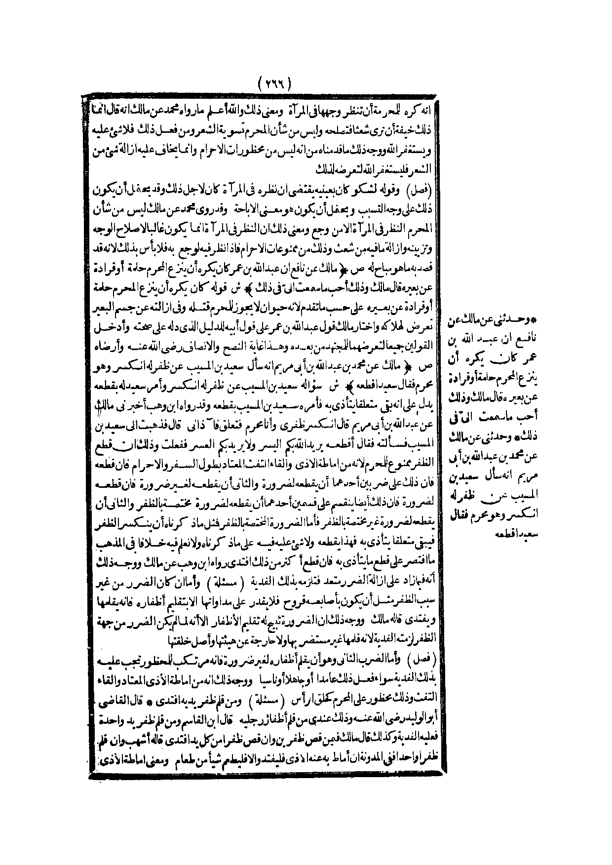 (ص) : (مَالِكٌ عَنْ مُحَمَّدِ بْنِ عَبْدِ اللَّهِ بْنِ أَبِي مَرْيَمَ أَنَّهُ سَأَلَ سَعِيدَ بْنَ الْمُسَيِّبِ عَنْ ظُفْرٍ لَهُ انْكَسَرَ وَهُوَ مُحْرِمٌ فَقَالَ سَعِيدٌ اقْطَعْهُ) .