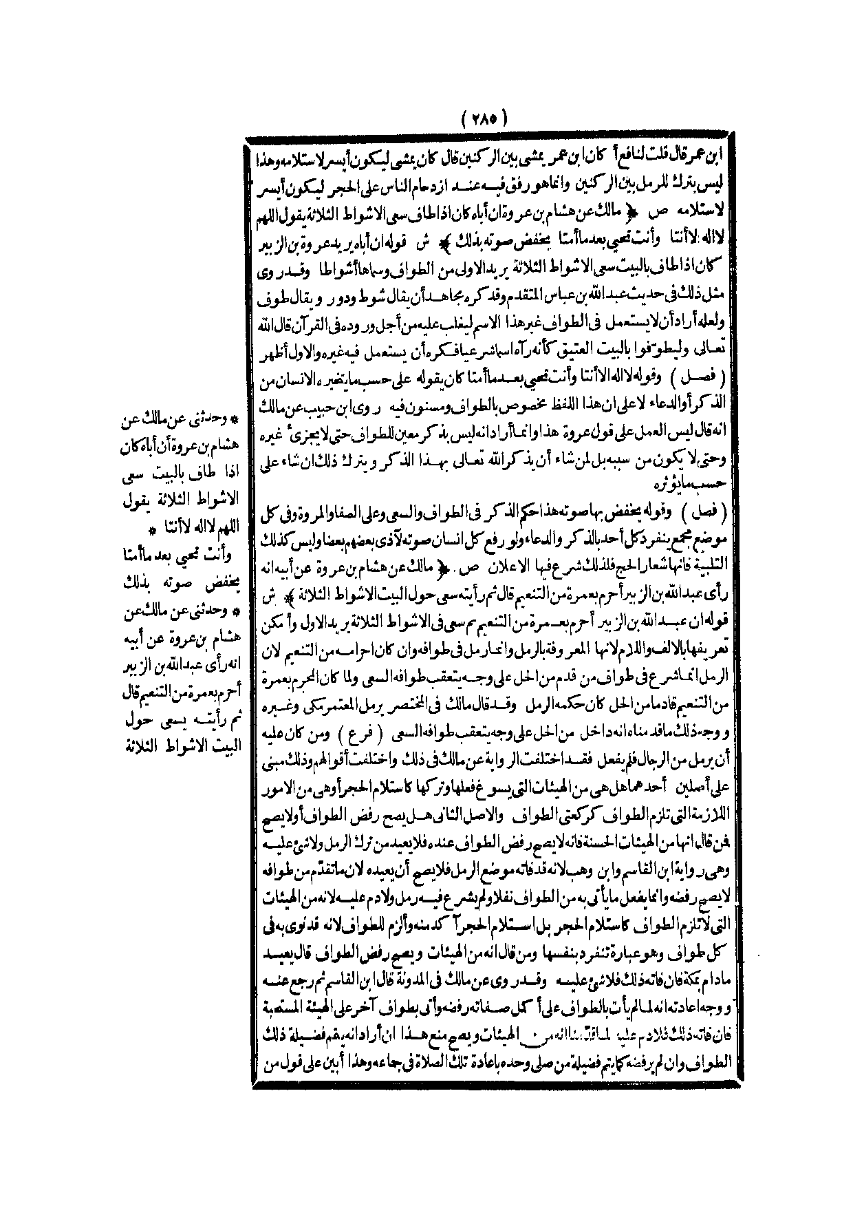 ـــــــــــــــــــــــــــــQقَالَ قُلْت لِنَافِعٍ أَكَانَ ابْنُ عُمَرَ يَمْشِي بَيْنَ الرُّكْنَيْنِ قَالَ كَانَ يَمْشِي لِيَكُونَ أَيْسَرَ لِاسْتِلَامِهِ وَهَذَا لَيْسَ بِتَرْكٍ لِلرَّمَلِ بَيْنَ الرُّكْنَيْنِ وَإِنَّمَا هُوَ رِفْقٌ فِيهِ عِنْدَ ازْدِحَامِ النَّاسِ عَلَى الْحَجَرِ لِيَكُونَ أَيْسَرَ لِاسْتِلَامِهِ.