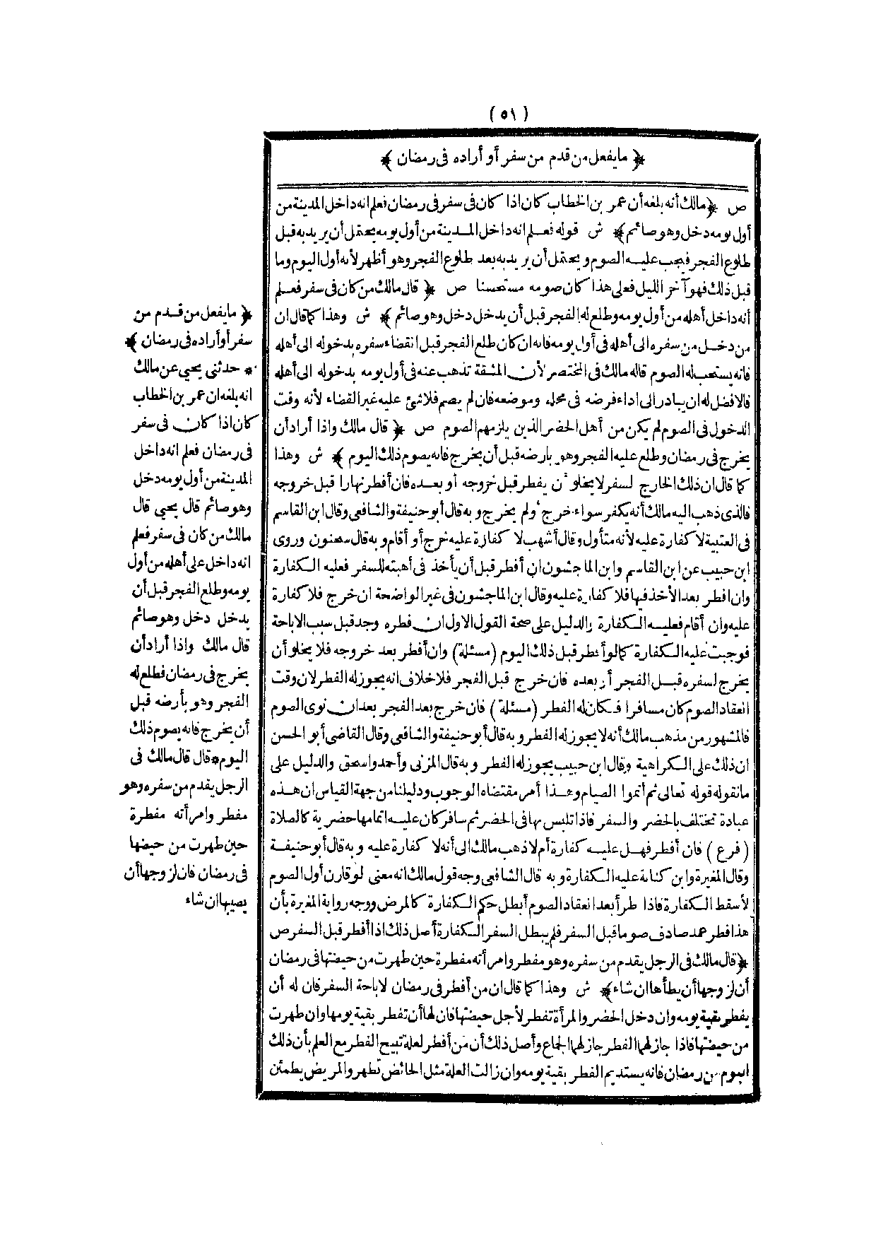 مَا يَفْعَلُ مَنْ قَدِمَ مِنْ سَفَرٍ أَوْ أَرَادَهُ فِي رَمَضَانَ (ص) : (مَالِكٌ أَنَّهُ بَلَغَهُ أَنَّ عُمَرَ بْنَ الْخَطَّابِ كَانَ إذَا كَانَ فِي سَفَرٍ فِي رَمَضَانَ فَعِلْم أَنَّهُ دَاخِلٌ الْمَدِينَةَ مِنْ أَوَّلِ يَوْمِهِ دَخَلَ وَهُوَ صَائِمٌ) .
