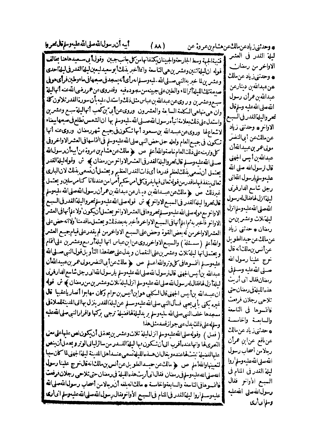 (ص) : (مَالِكٌ عَنْ هِشَامِ بْنِ عُرْوَةَ عَنْ أَبِيهِ أَنَّ رَسُولَ اللَّهِ - صَلَّى اللَّهُ عَلَيْهِ وَسَلَّمَ - قَالَ «تَحَرَّوْا لَيْلَةَ الْقَدْرِ فِي الْعَشْرِ الْأَوَاخِرِ مِنْ رَمَضَانَ» .