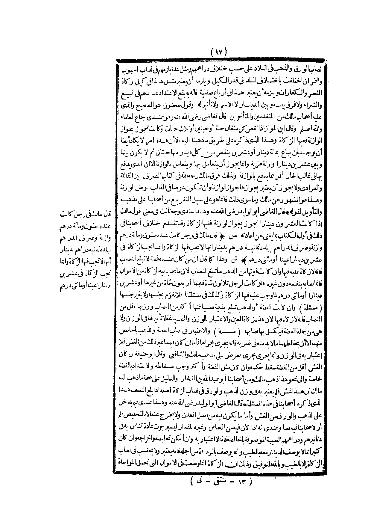 ـــــــــــــــــــــــــــــQنِصَابُ الْوَرِقِ وَالذَّهَبِ فِي الْبِلَادِ عَلَى حَسَبِ اخْتِلَافِ دَرَاهِمِهِمْ وَمِثْلُ هَذَا يَلْزَمُهَا فِي نِصَابِ الْحُبُوبِ وَالتَّمْرِ إنْ اخْتَلَفَتْ بِاخْتِلَافِ الْبَلَدِ فِي قَدْرِ الْكَيْلِ وَيَلْزَمُهُ أَنْ يَعْتَبِرَ مِثْلَ هَذَا فِي كَيْلِ زَكَاةِ الْفِطْرِ وَالْكَفَّارَاتِ وَيَلْزَمُهُ أَنْ يَعْتَبِرَ هَذَا فِي أَرْبَاعِ صِقِلِّيَةَ فَإِنَّهُ بِهِ يَقَعُ الِاعْتِدَادُ عِنْدَهُمْ فِي الْبَيْعِ وَالشِّرَاءِ وَلَا فَرْقَ بَيْنَهُ وَبَيْنَ الدِّينَارِ إلَّا الِاسْمُ وَلَا تَأْثِيرَ لَهُ وَقَوْلُ سَحْنُونٍ هُوَ الصَّحِيحُ، وَاَلَّذِي عَلَيْهِ أَصْحَابُ مَالِكٍ مِنْ الْمُتَقَدِّمِينَ وَالْمُتَأَخِّرِينَ قَالَ الْقَاضِي - رَضِيَ اللَّهُ عَنْهُ - وَهُوَ عِنْدِي إجْمَاعُ الْعُلَمَاءِ، وَاَللَّهُ أَعْلَمُ.