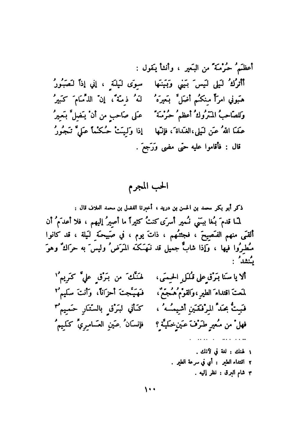 فهلْ من مُعيرٍ طَرْفَ عَينٍ خَليَّةٍ؟ ... فإنسَانُ عَينِ العَامِرِيِّ كَليمُ