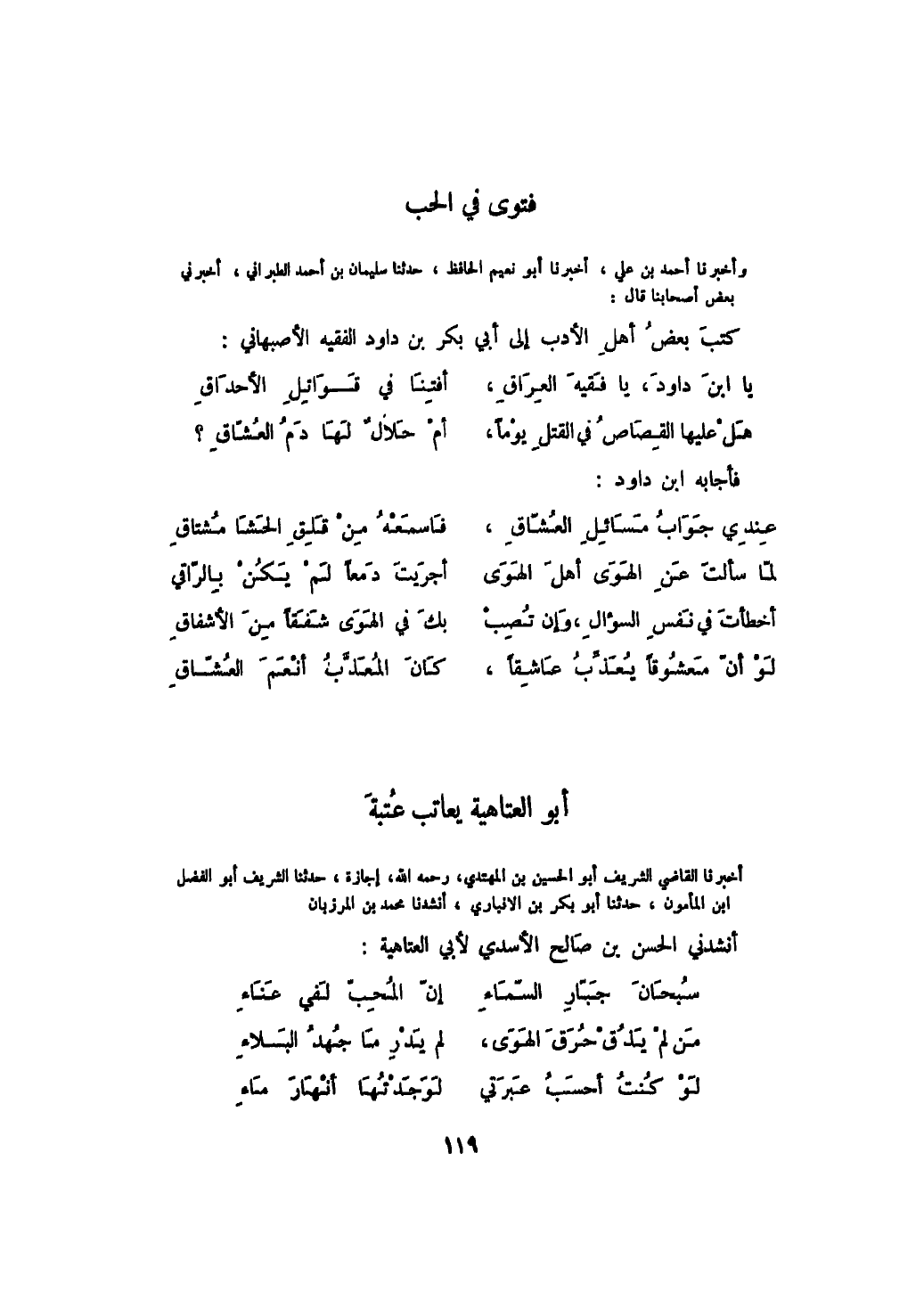 يا ابنَ داودَ، يا فَقيهَ العِرَاقِ ... أفتِنَا في قَواتِلِ الأحدَاقِ