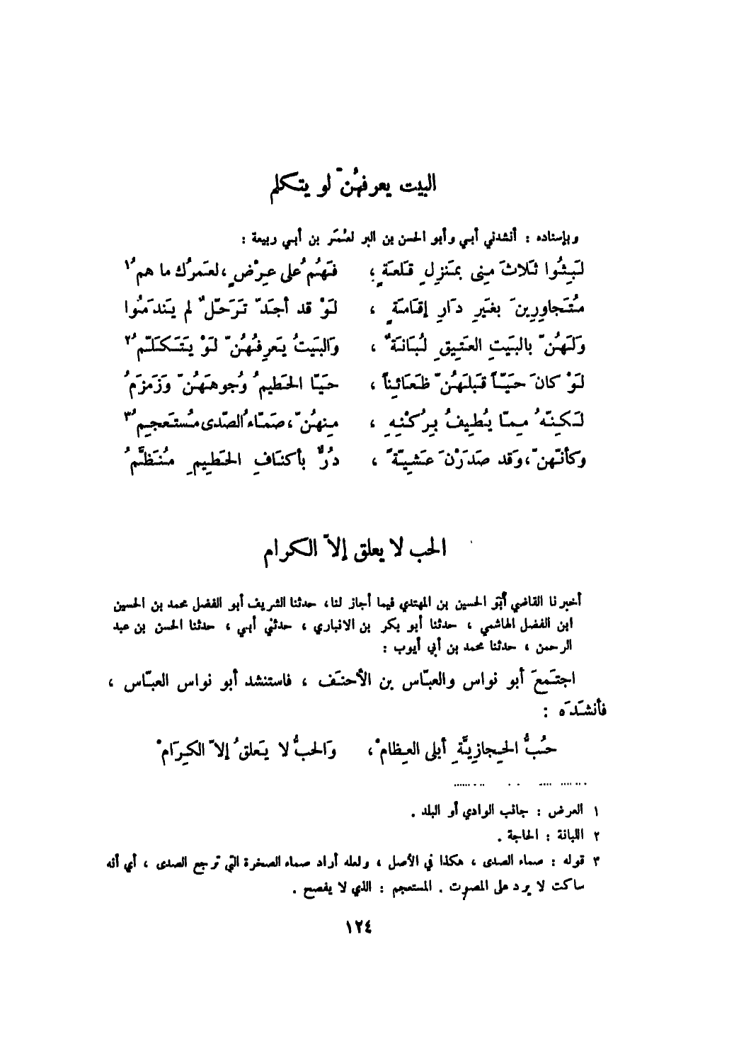 حُبُّ الحِجازِيَّةِ أبلى العِظامْ، ... وَالحبُّ لا يَعلقُ إلاّ الكِرَامْ