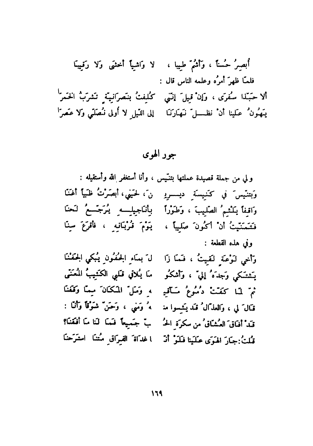 قُلتُ: جَارَ الهَوَى عَلَينا فَلَوْ أنّ ... اغَداةَ الفِرَاقِ مُتنا استَرَحنَا