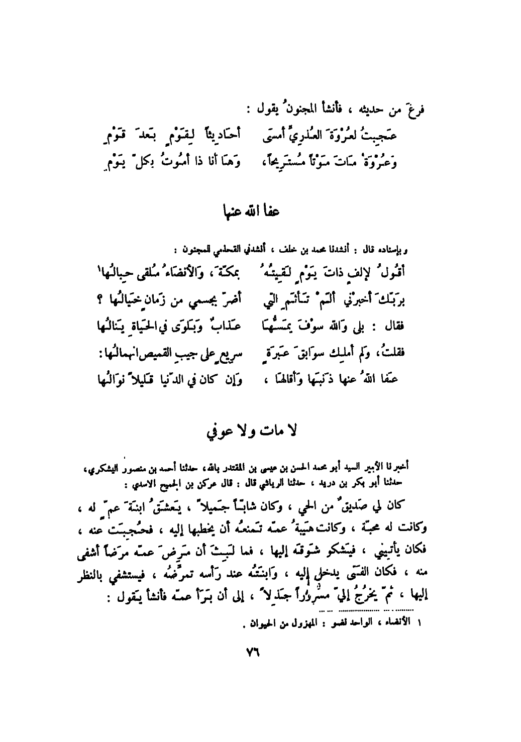 عَجِبتُ لعُرْوَةَ العُذرِيِّ أمسَى ... أحَادِيثاً لِقَوْمٍ بَعدَ قَوْمِ