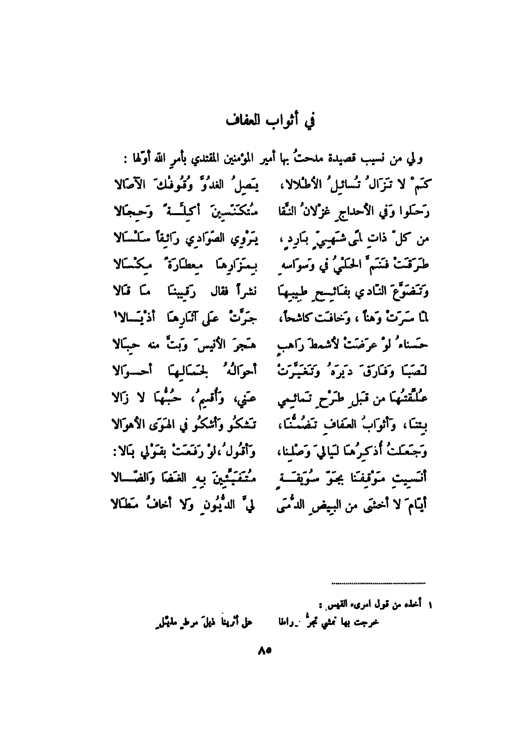 كَمْ لا تَزَالُ تُسائِلُ الأطْلالا، ... يَصِلُ الغدُوَّ وُقُوفُكَ الآصَالا