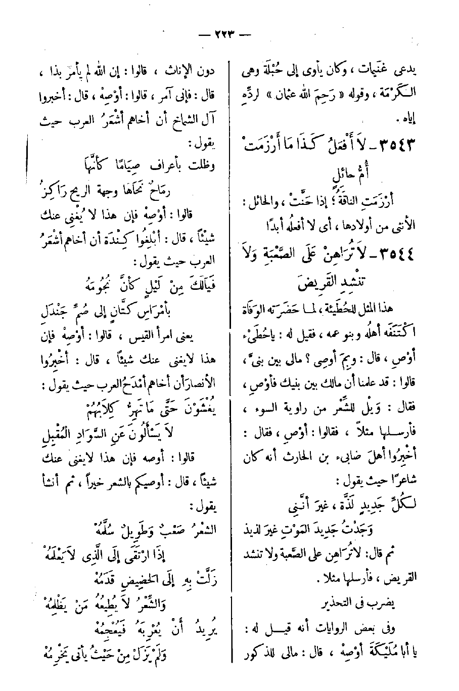 3544- لاَ تُرَاهِنْ عَلَى الصَّعْبَةِ وَلاَ تَنْشِدِ القَرِيضَ
