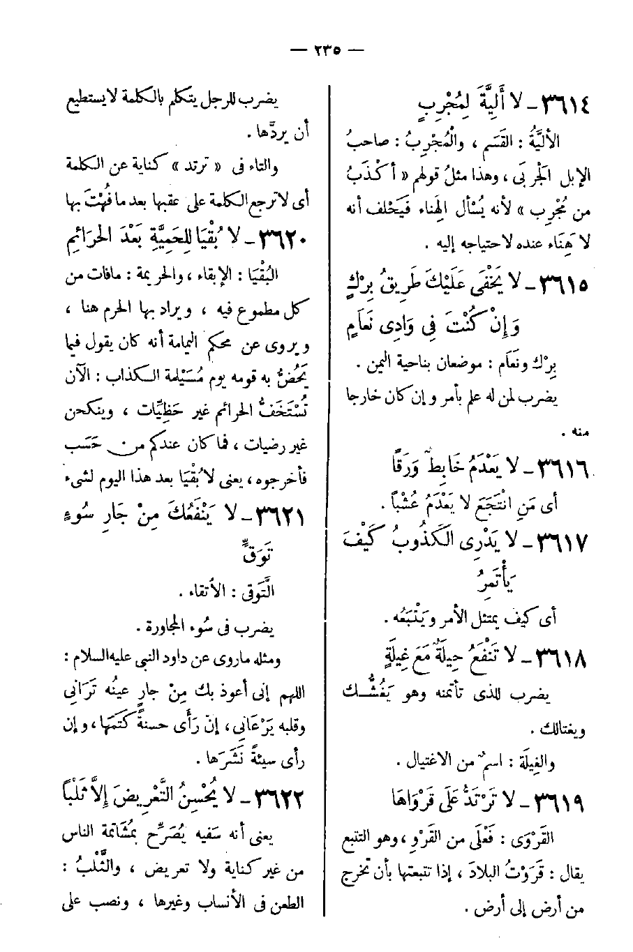 3614- لاَ أَلِيةَّ لِمُجْرِبٍ