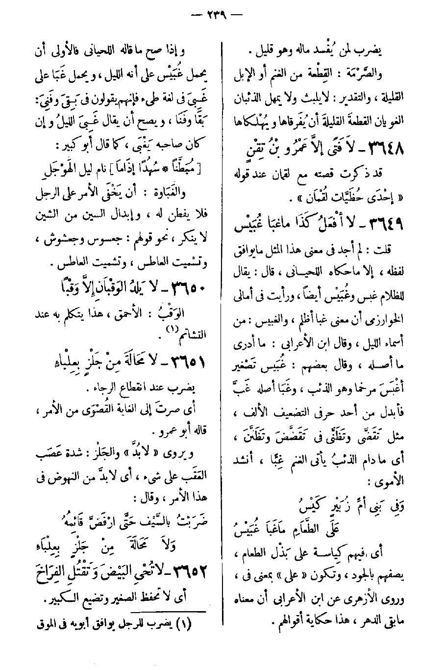قُلتُ: لم أجد في معنى هذا المثل ما يوافق لفظه، إلاَ ما حكاه اللحياني، قَالَ: يُقَال للظلام غبس وغُبَيْس أيضاً، ورأيت في أمالى الخوارزمى أن معنى غبا أظلم، والغبيس: من أسماء الليل، وقَالَ ابن الأَعرَبي: ما أدري ما أصله، وقالَ بعضهم: غبَيْس تَصْغير أغْبَسَ مرخما وهو الذئب، وغَبَا أصله غَبَّ فأبدل من أحد حرفي التضعيف الألف، مثل تَقَضَّي وتَظَنَّي في تَقَضَّضَ وتَظَنَّنَ، أي مادام الذئب