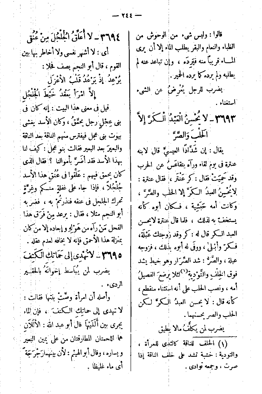 3693- لاَ يُحْسْنُ العَبْدُ الكَرَّ إلاَ الحَلْبَ والصَّرَّ