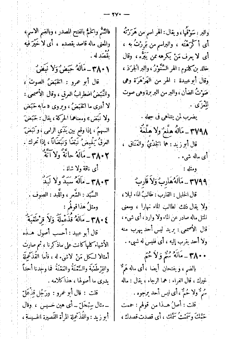 3801- مَالَهُ حَبَضٌ ولاَ نَبَضٌ