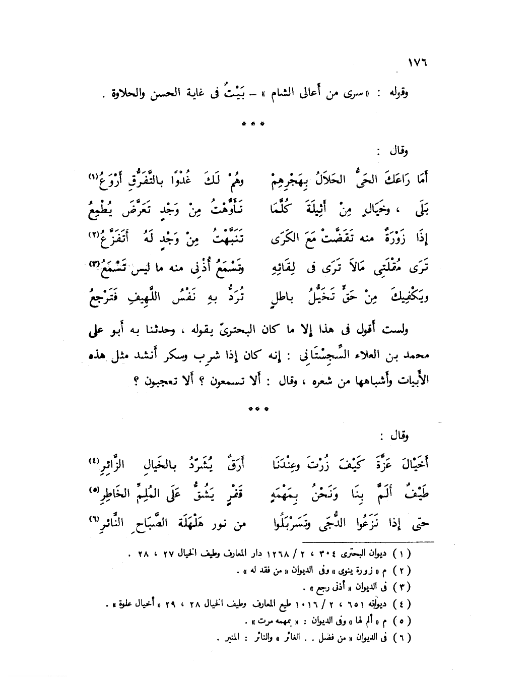 وقوله: «سرى من أعالي الشام» بيت في غاية الحسن والحلاوة.
