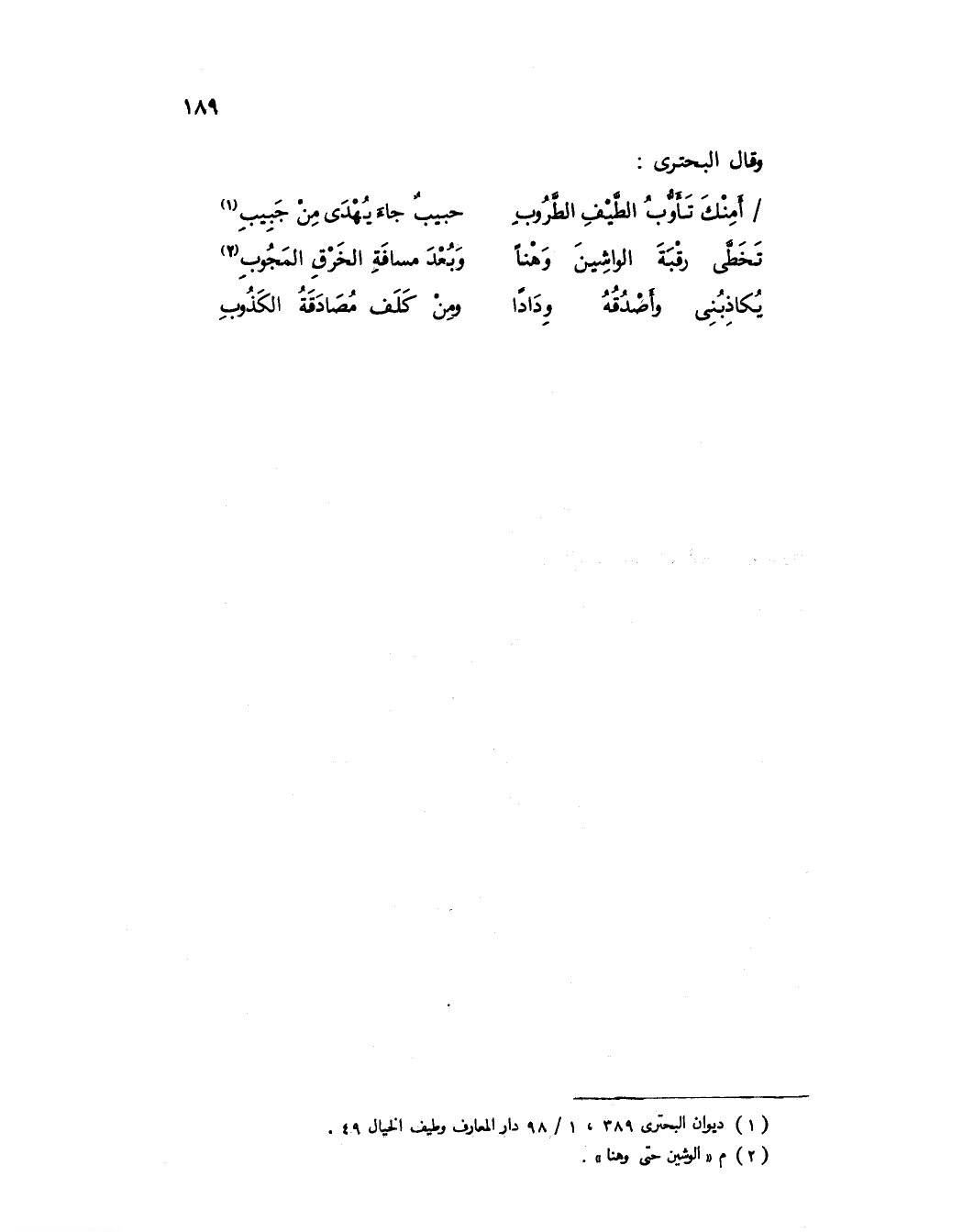 / أمنك تأوب الطيف الطروب ... حبيب جاء يهدى من جبيب (1)