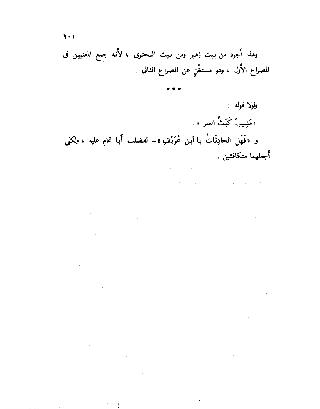 و «فهل الحادثات يابن عويف» لفضلت أبا تمام عليه، ولكني أجعلهما متكافئين.