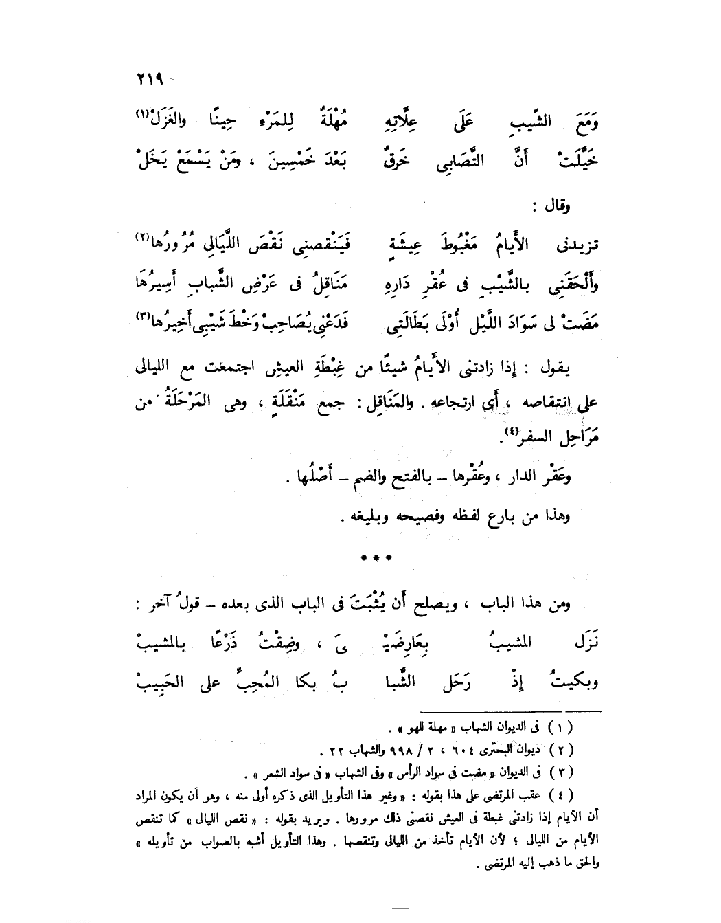 مضت لي سواد الليل أولى بطالتي ... فدعني يصاحب وخط شيبي أخيرها (3)