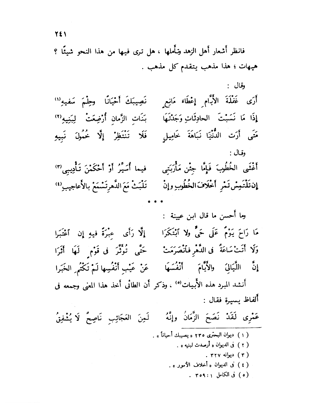 أنشد المبرد هذه الأبيات (5)، وذكر أن الطائي أخذ هذا المعنى وجمعه في ألفاظ يسيرة فقال: