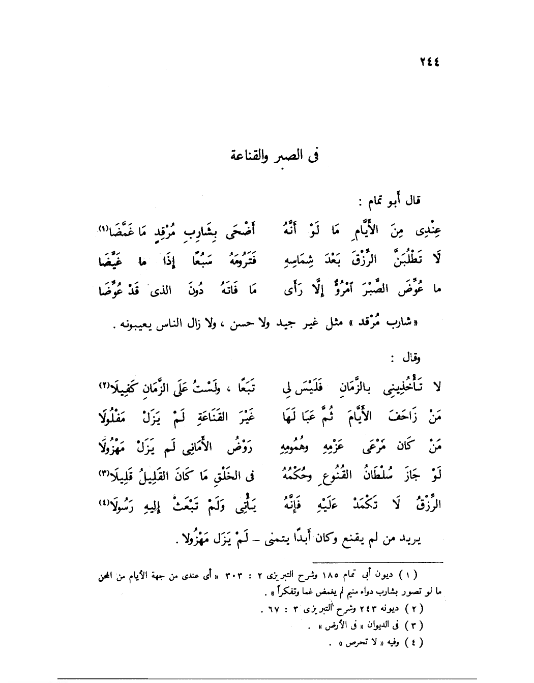 * في الصبر والقناعة