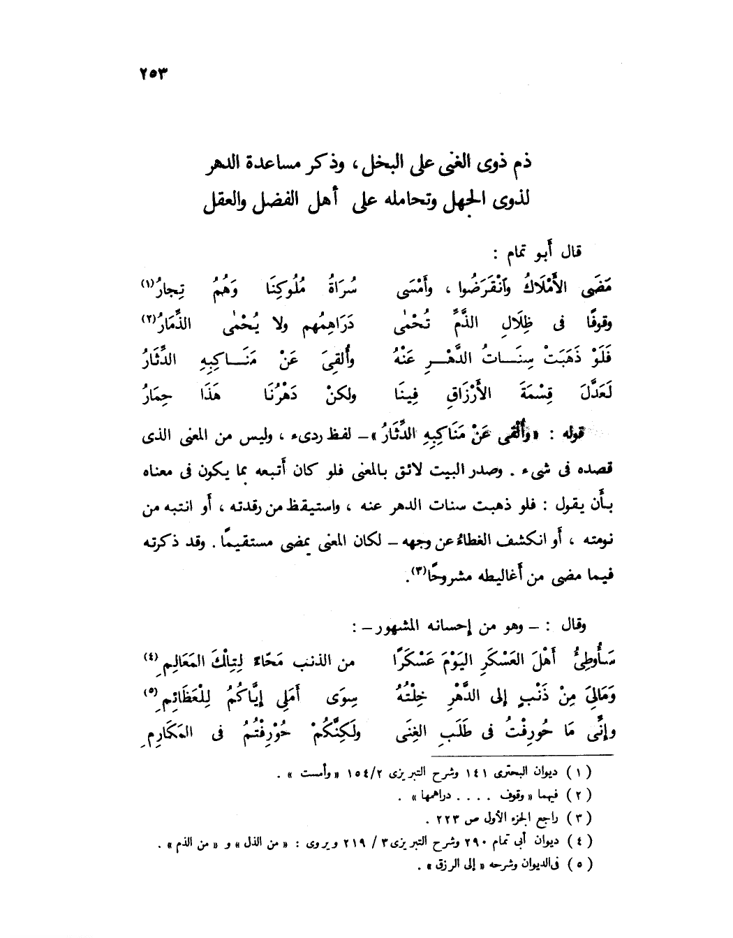 * ذم ذوي الغنى على البخل، وذكر مساعدة الدهر لذوي الجهل وتحامله على أهل الفضل والعقل