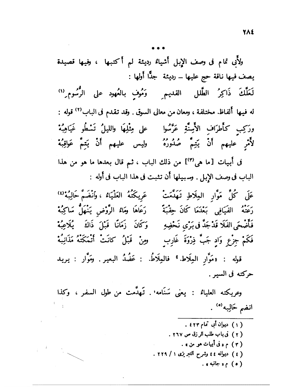. ولأبي تمام في وصف الإبل أشياء رديئة لم أكتبها، وفيها قصيدة يصف فيها ناقة حج عليها رديئة جداً أولها: