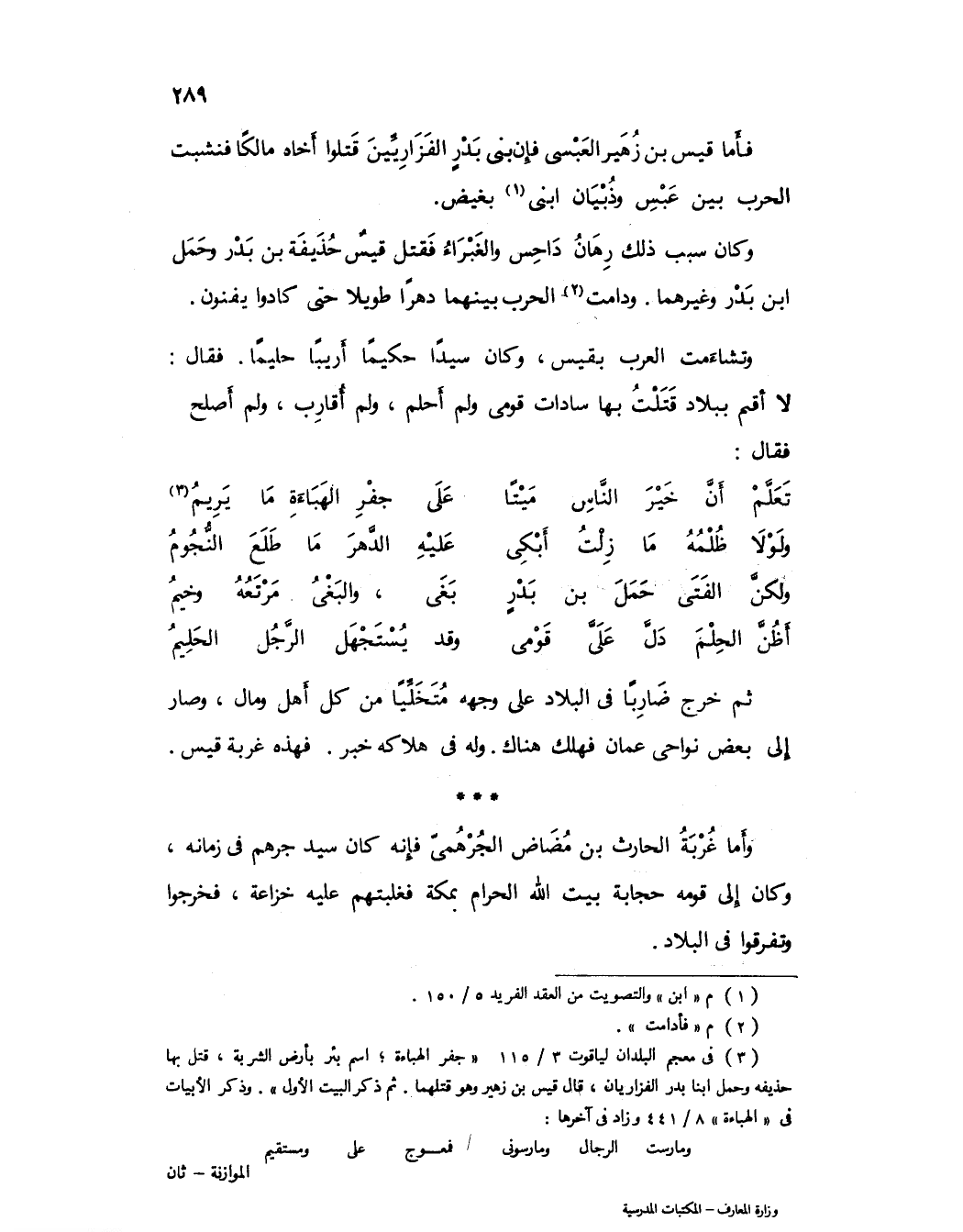 وكان سبب ذلك رهان داحس والغبراء فقتل قيس حذيفة بن بدر وحمل ابن بدر وغيرهما، ودامت (2) الحرب بينهما دهراً طويلاً حتى كادوا يفنون.
